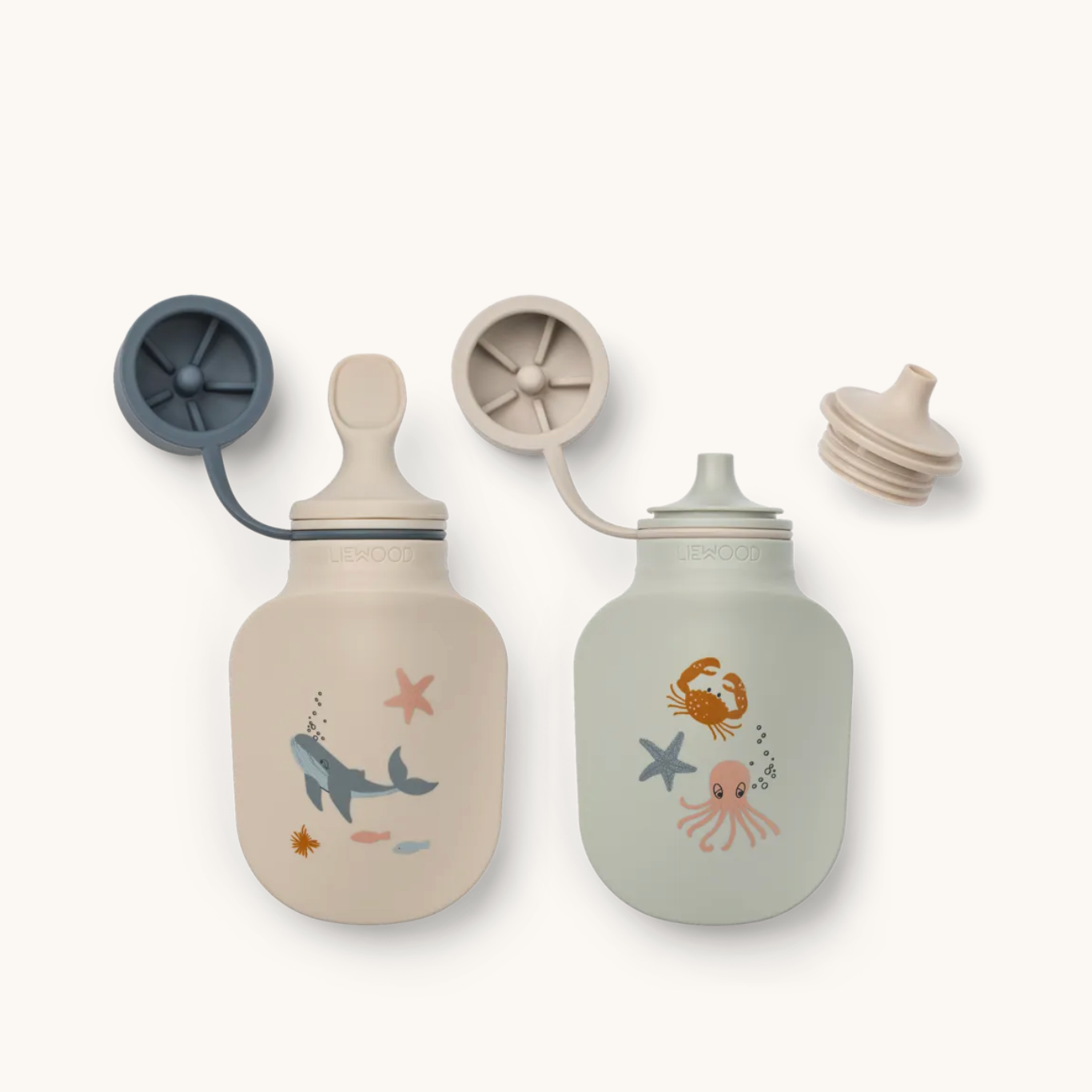 - les bouteilles sensorielles à paillettes à agiter devant ses yeux (émerveillement garanti !)