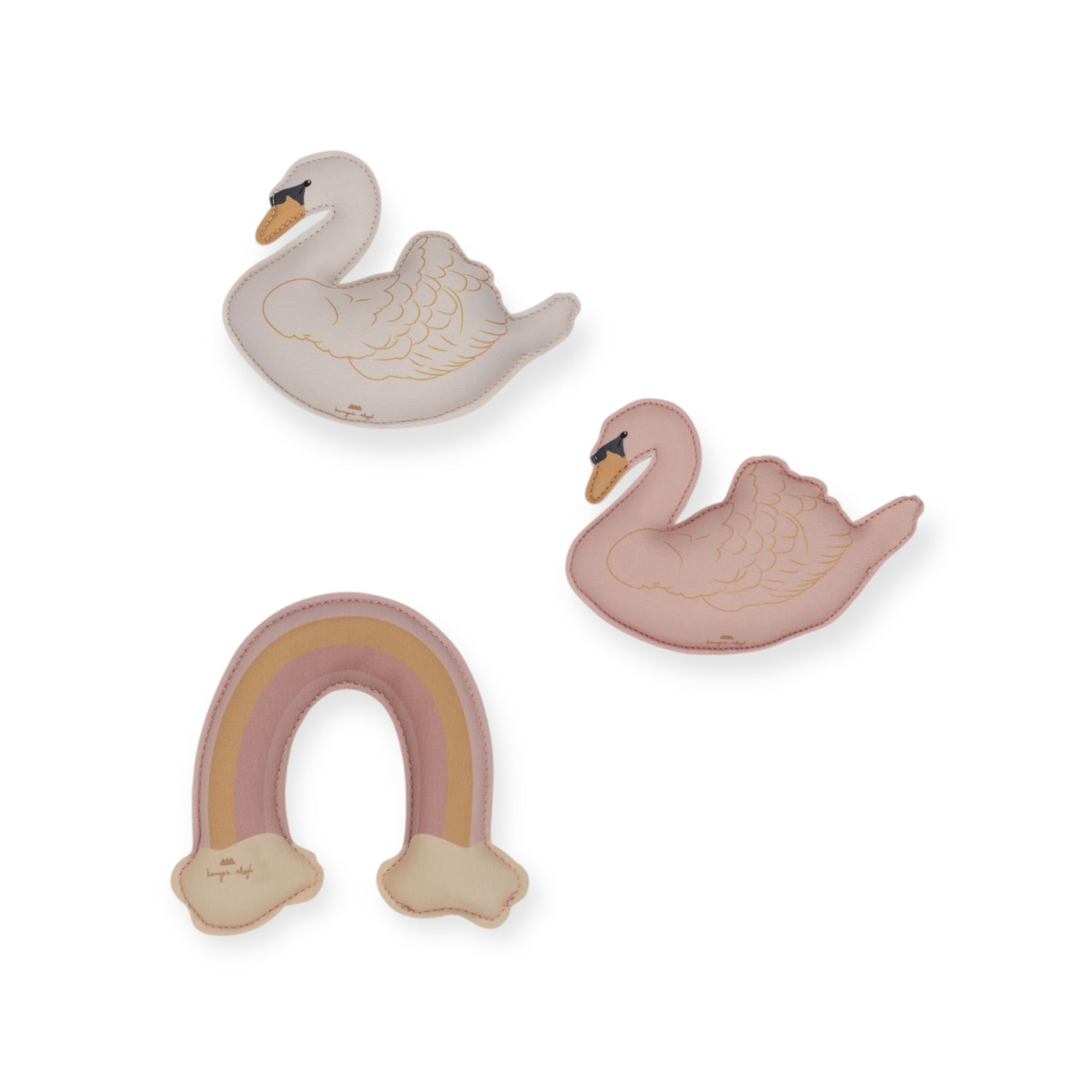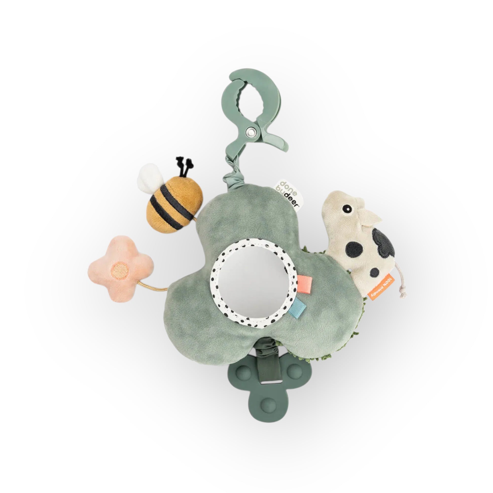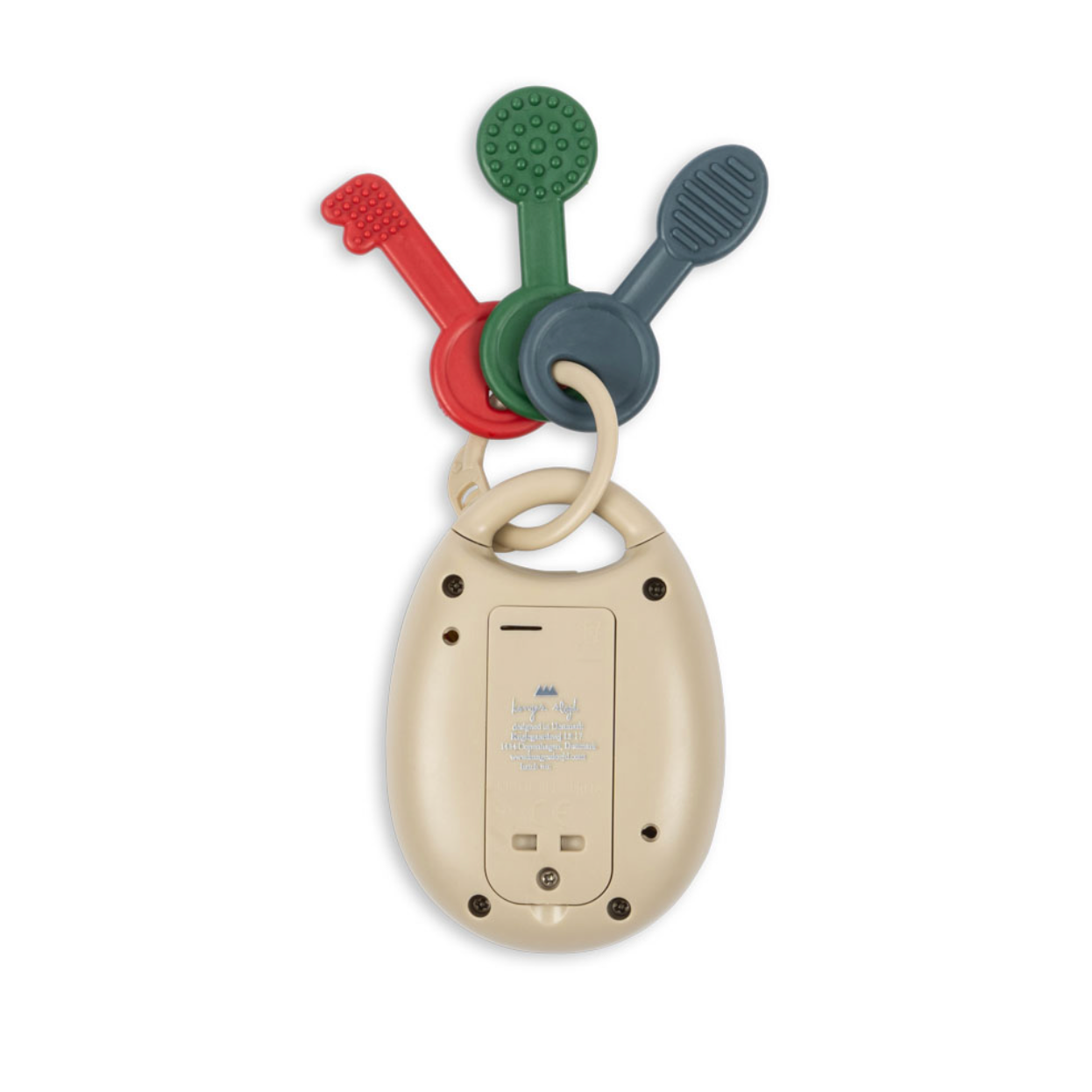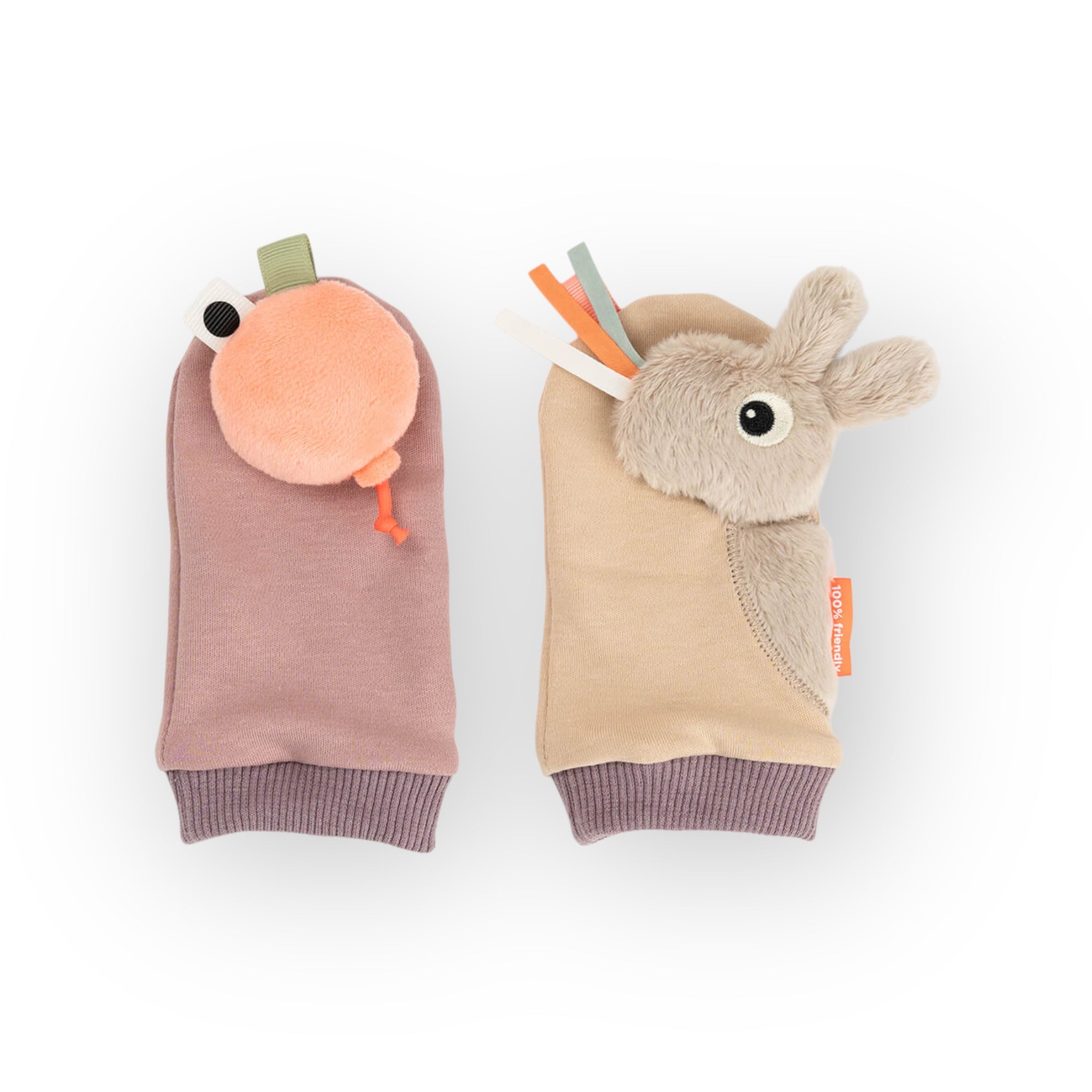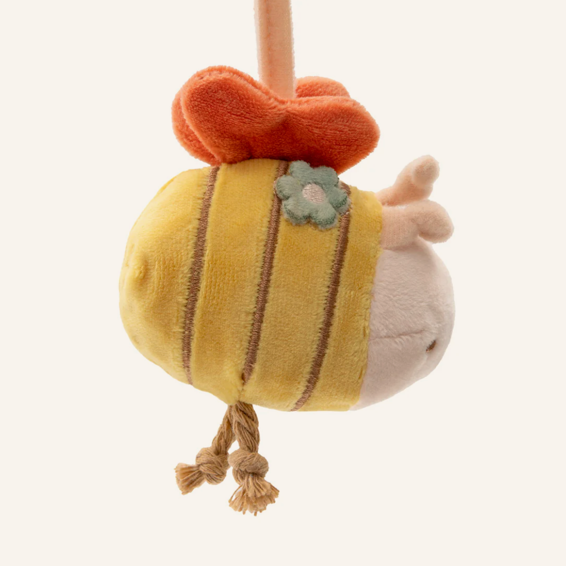 Il découvre les matières et a certainement choisi SON doudou. Il joue avec de petits hochets qu'il agite et mordille. Ils l'aident à développer sa motricité. Il adore les mobiles qui sont captivants, apaisants après tant de découvertes.