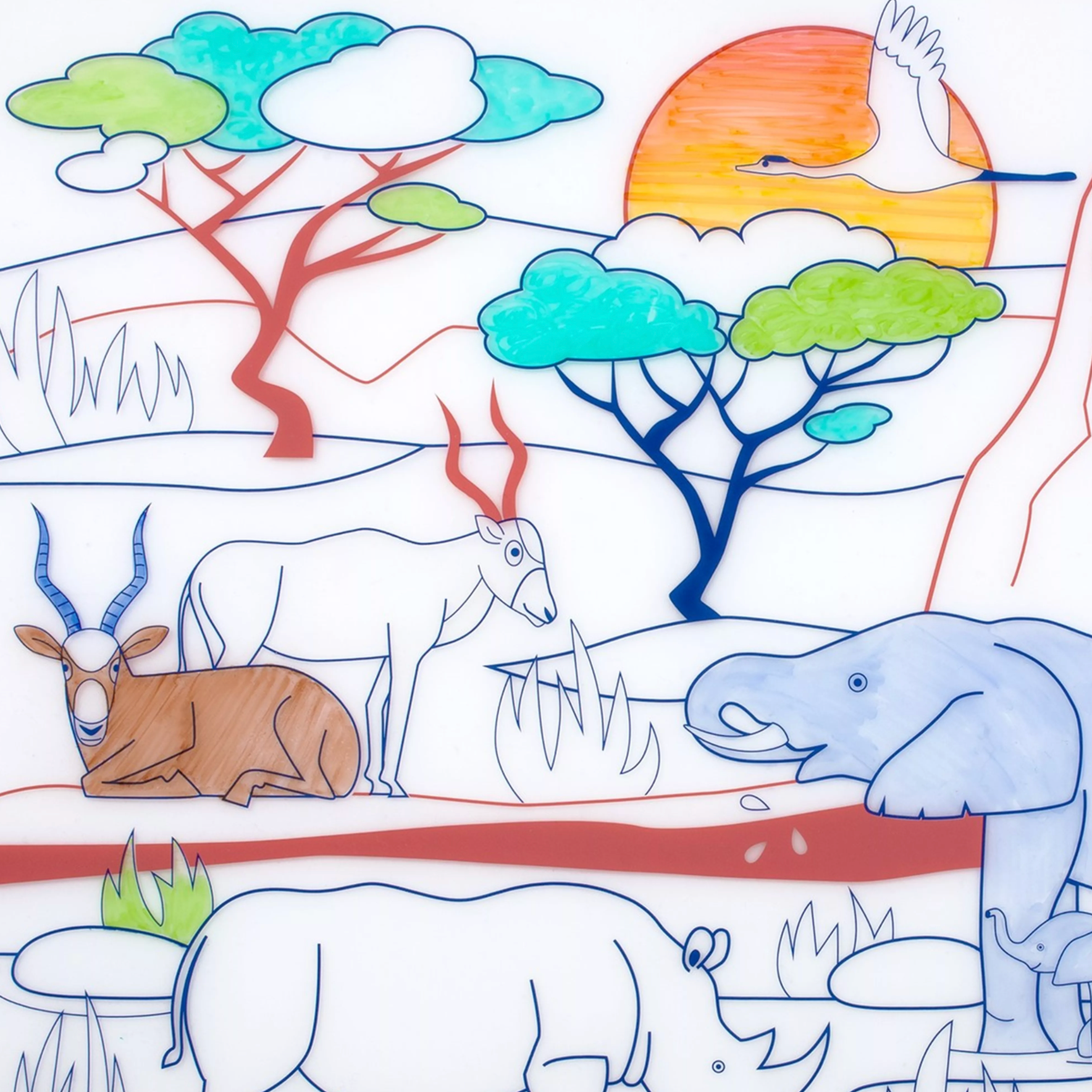 Coloriage réutilisable | Set de table Savane