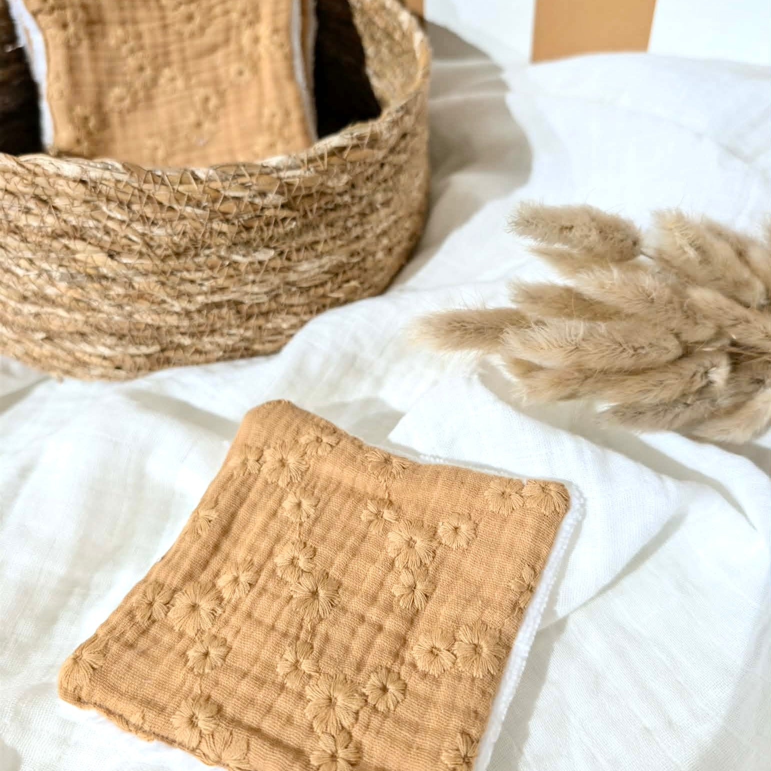 Lingette lavable | Brodé camel