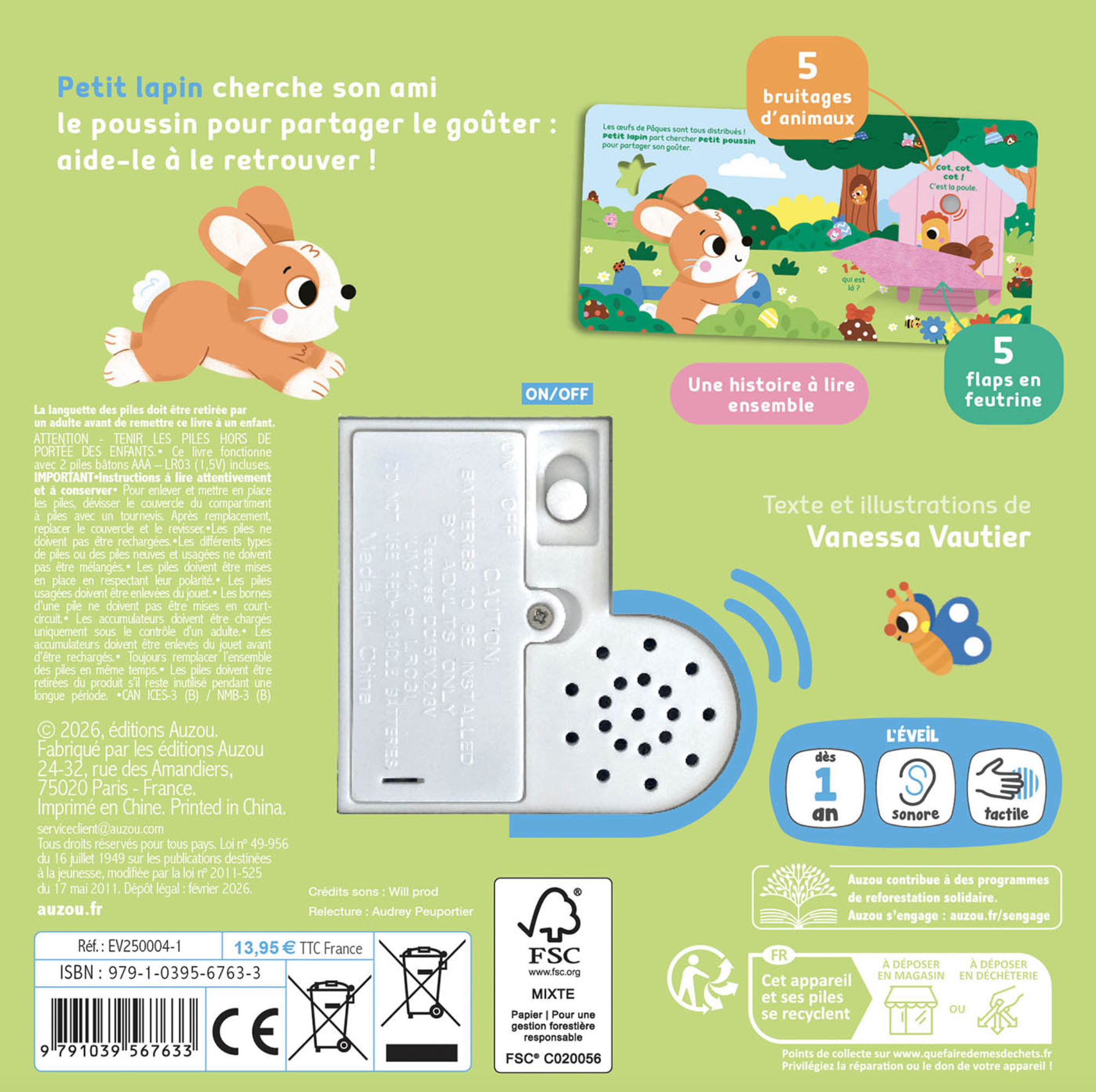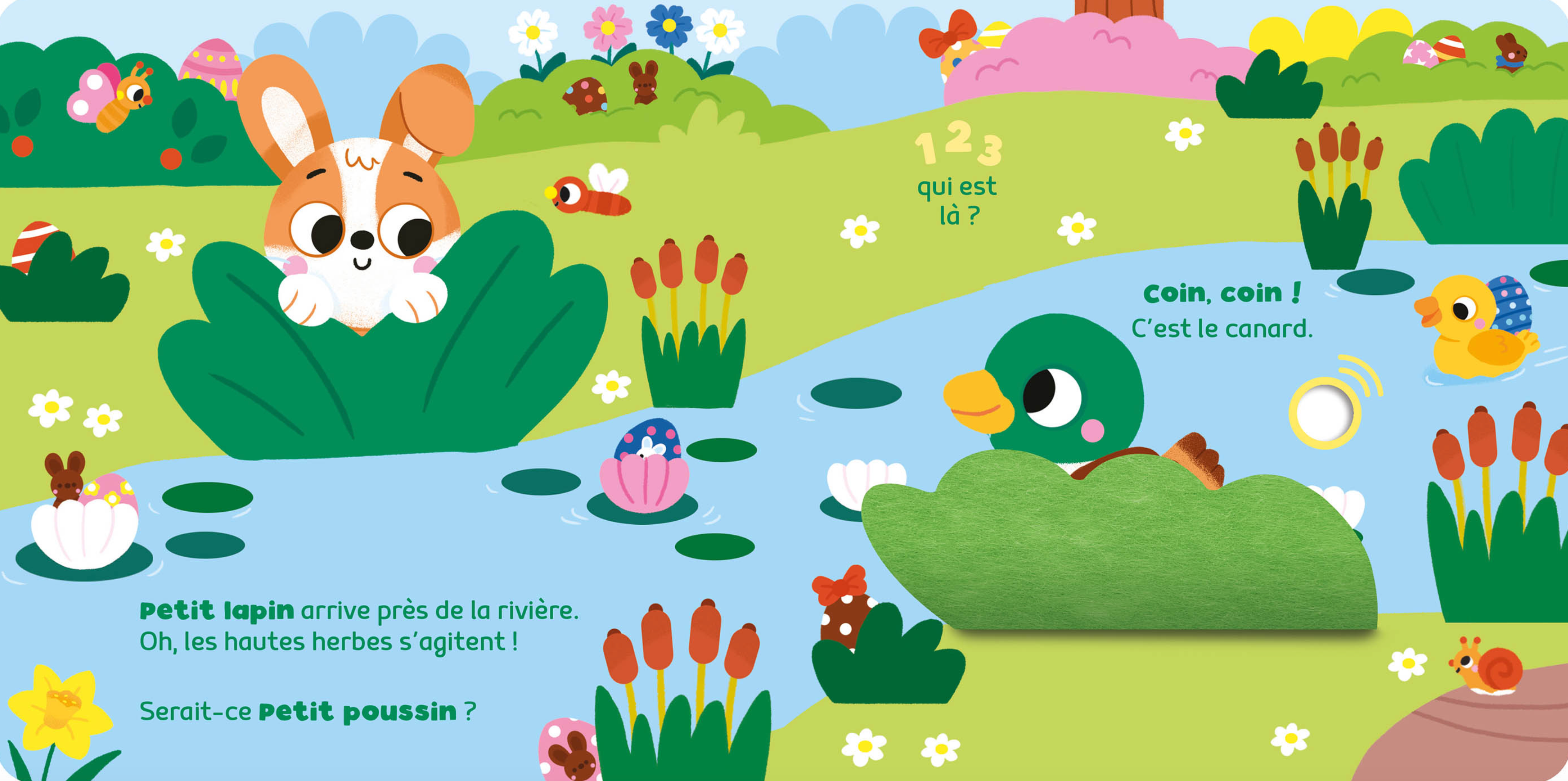Un livre tout-carton sur le thème de Pâques qui propose une petite histoire courte, mettant en scène un petit animal héros, et des animations multiples :