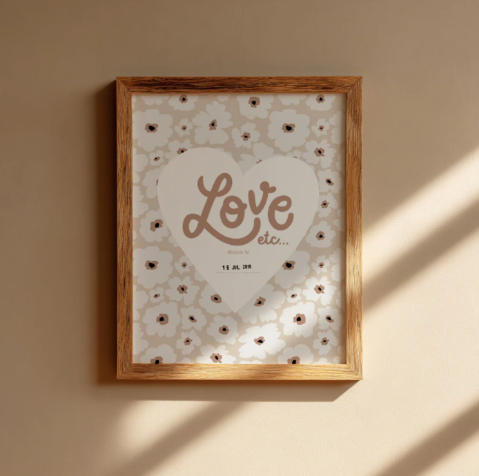 Cette affiche délicate vous permet de mettre en lumière la date qui a marqué votre histoire. Inscrivez ou tamponnez l’événement de votre choix : la rencontre d’un couple, la naissance d’un enfant, un souvenir fondateur ou toute date qui compte vraiment.