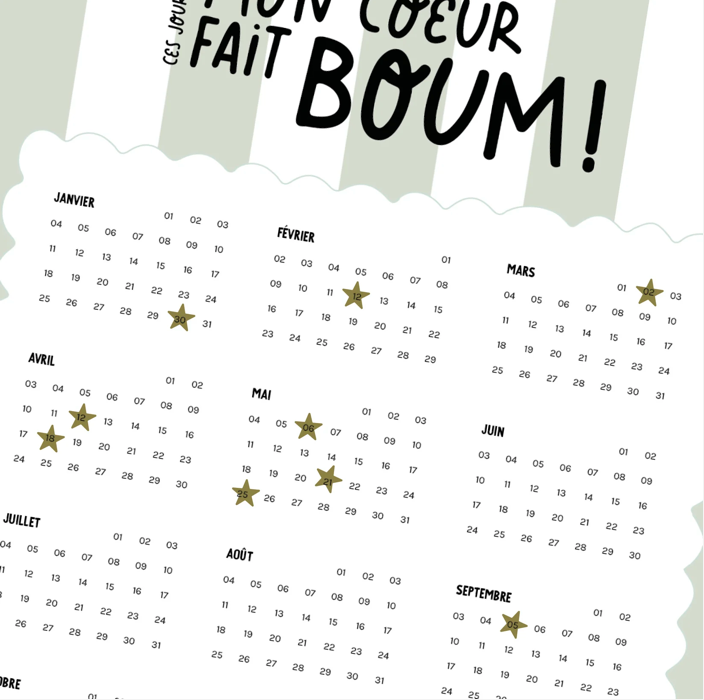 Ces jours où mon cœur fait boum arrive avec son petit coeur pour dater les moments qui font vibrer l’année : anniversaires, rencontres, grands oui, petites victoires…