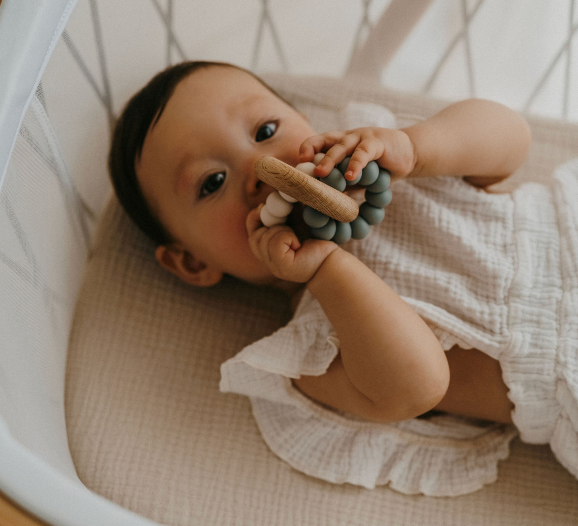 Le meilleur allié de votre mini lors des poussées dentaires. Une partie en bois et 2 parties en silicone alimentaire, à mâchouiller sans limites.