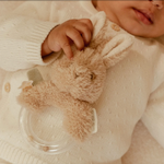 Cet anneau hochet en forme de lapin attirera la curiosité de votre mini. Agites-le, écoute et touche ses oreilles toute douces. L’anneau transparent est rempli de petites perles que bébé fait tinter en l’agitant, de quoi améliorer la coordination main-œil et stimuler les sens.
