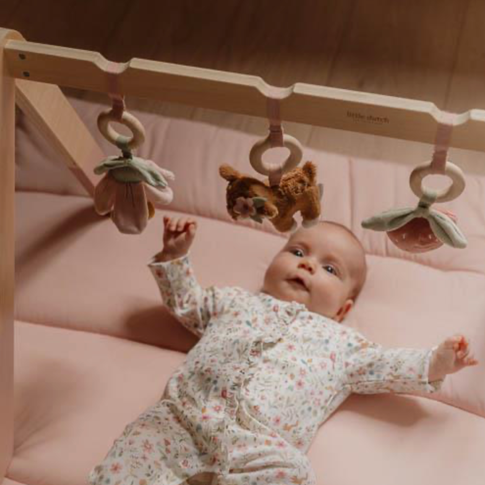L'arche d'éveil est un endroit de jeu merveilleux pour les petits curieux ! Les jouets suspendus doux, les différentes textures et les sons subtils stimulent les sens et encouragent le mouvement. Parfait pour les premières découvertes ! L'arche en bois aide à saisir, atteindre et tourner, stimulant ainsi la motricité de manière ludique.