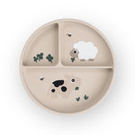 Une assiette sur le thème de la ferme avec 3 compartiments pour les repas de votre mini. Le dessous de l'assiette dispose d'une partie anti-dérapante pour qu'elle reste bien en place pendant les repas.