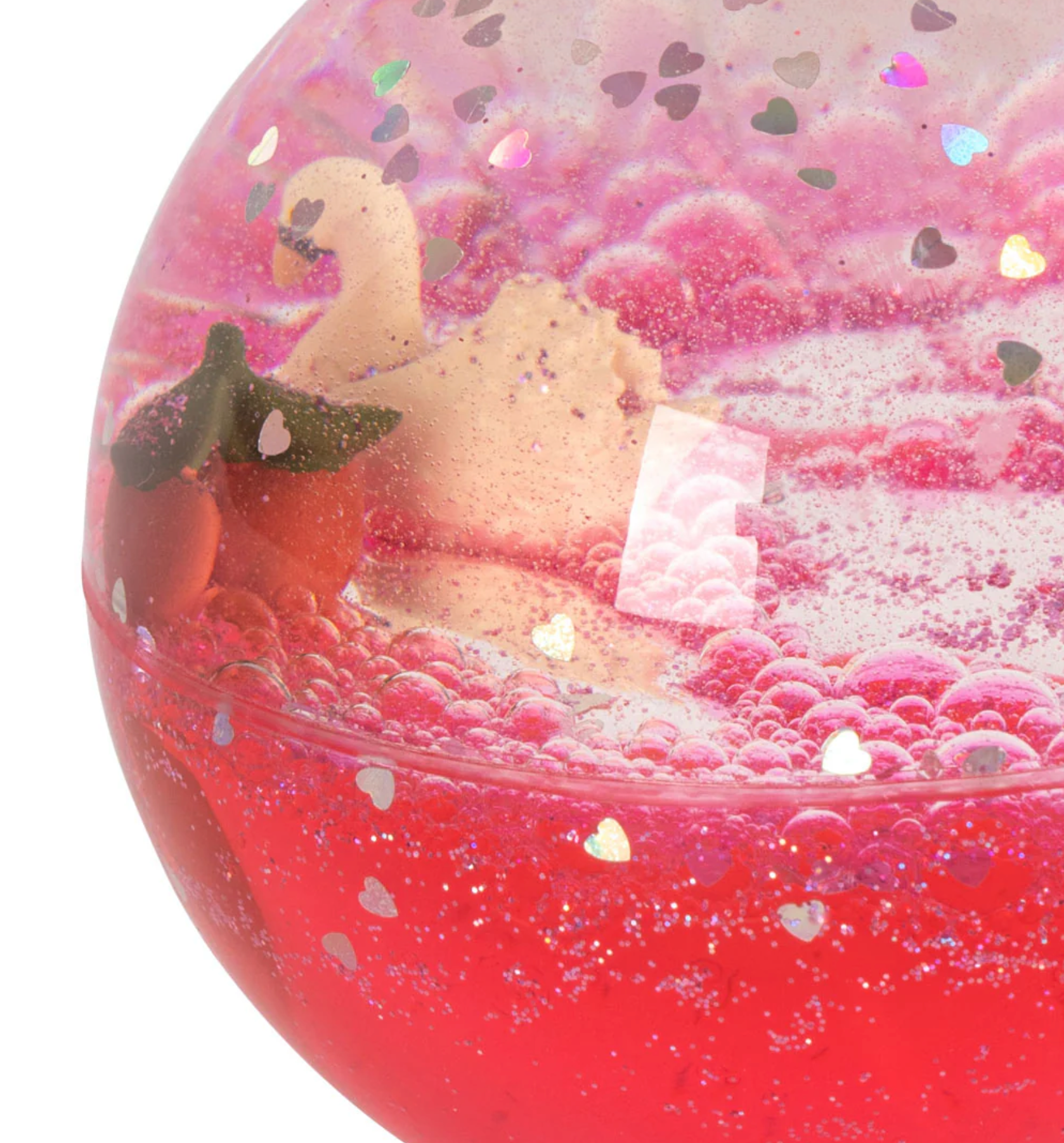 Une balle remplie de magie pour votre mini ! Conçue pour une activité sensorielle pour bébé, faites-la rouler, secouez-la ou jouez avec, et regardez le cygne, les cerises et les paillettes tourbillonner à l’intérieur.