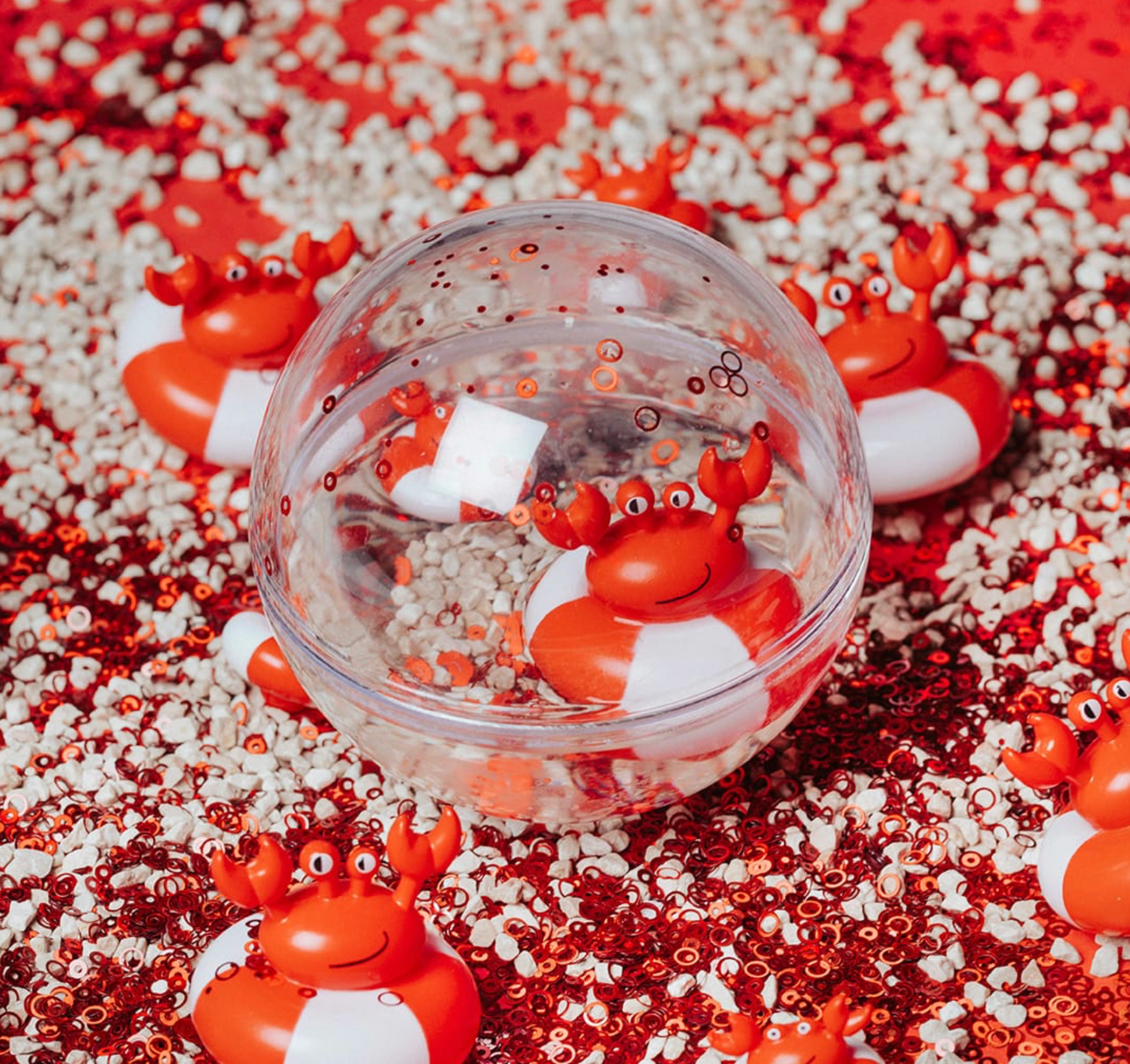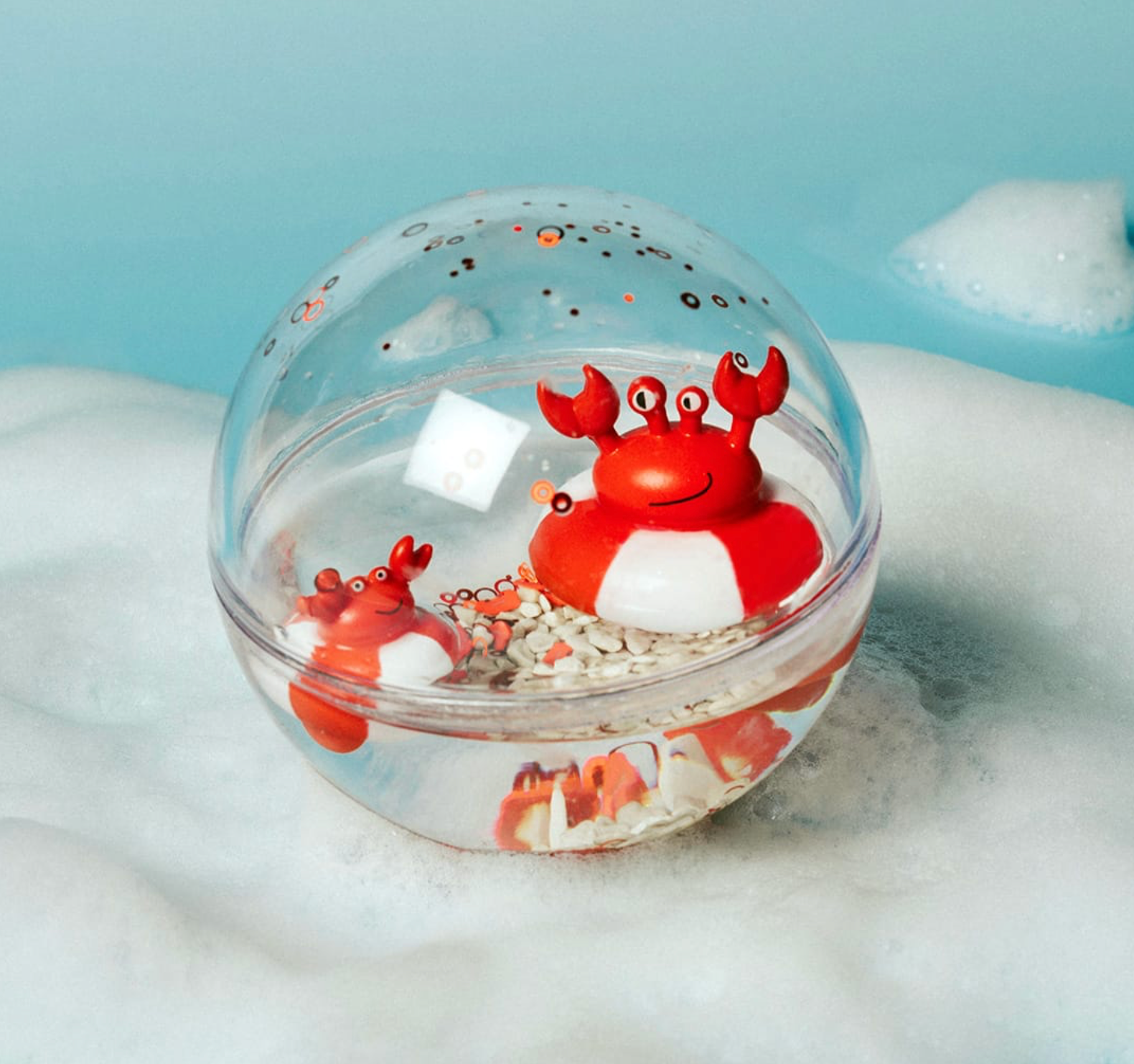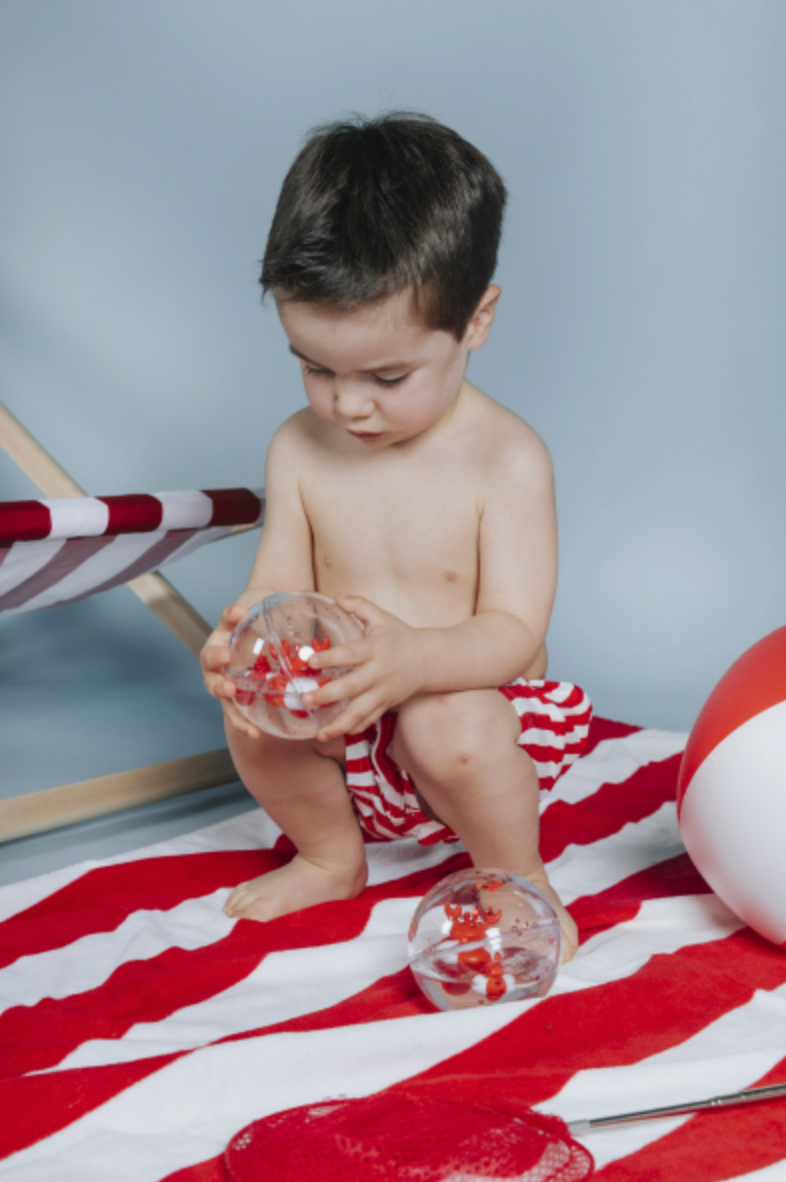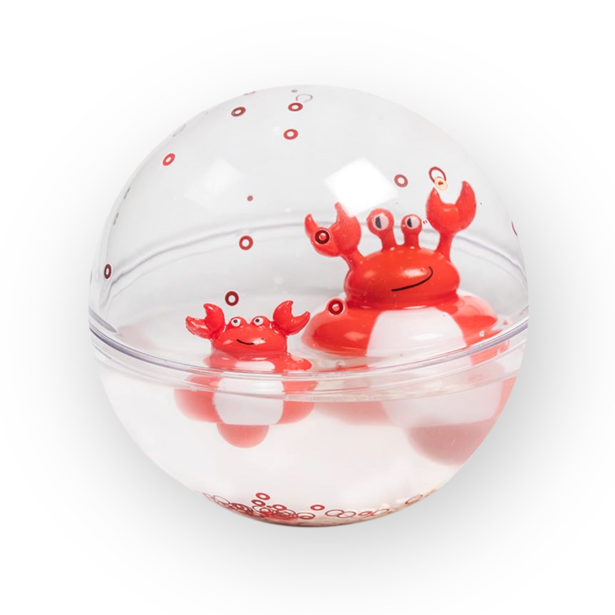 Place au grand plongeon ! Une balle sensorielle unique où les crabes nagent aux côtés de votre bébé au milieu de paillettes magiques.