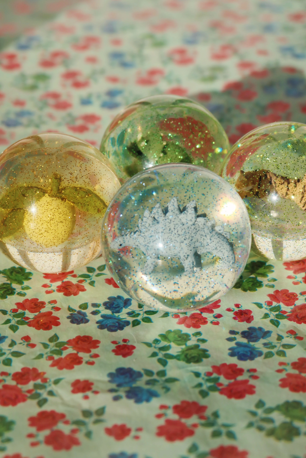 Ces balles rebondissantes transparentes, ornées de figurines 3D et de paillettes à l'intérieur, sont faites pour des heures de jeu et d'amusement.