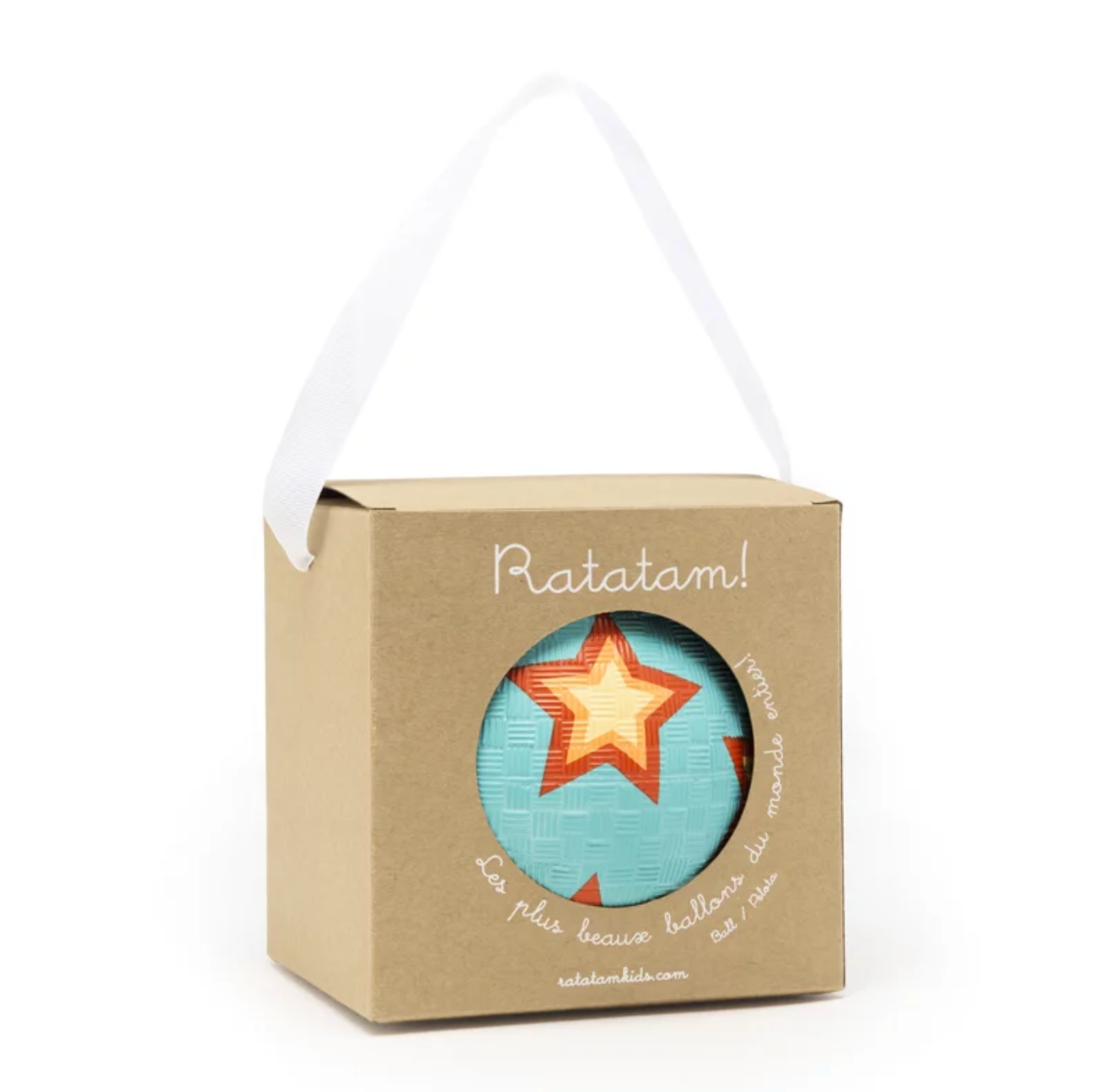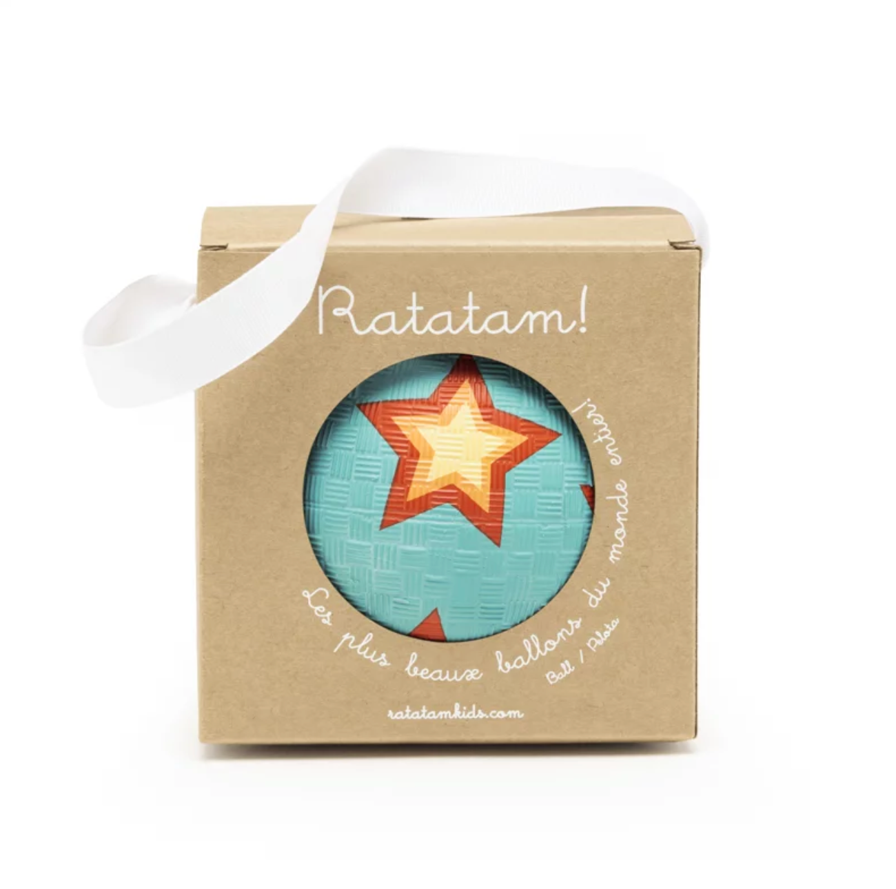 Découvrez un adorable ballon Ratatam avec de pétillantes étoiles sur fond bleu.