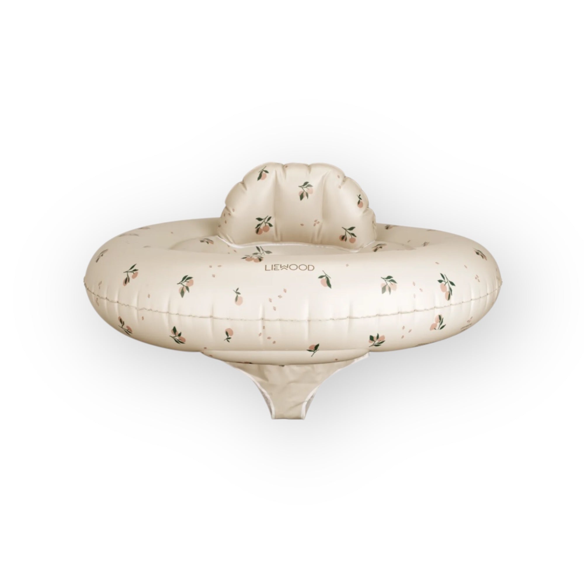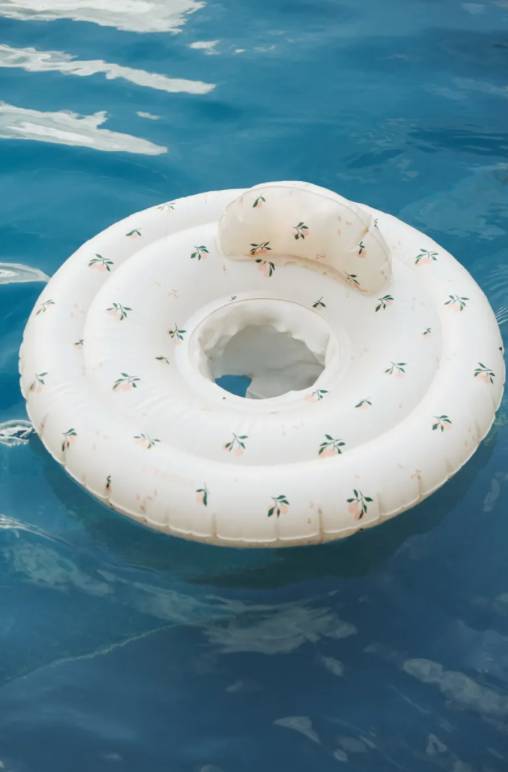 Bouée gonflable pour bébé avec siège intégré, idéale pour les premières baignades de bébé qui va agiter ses petits pieds dans l'eau.