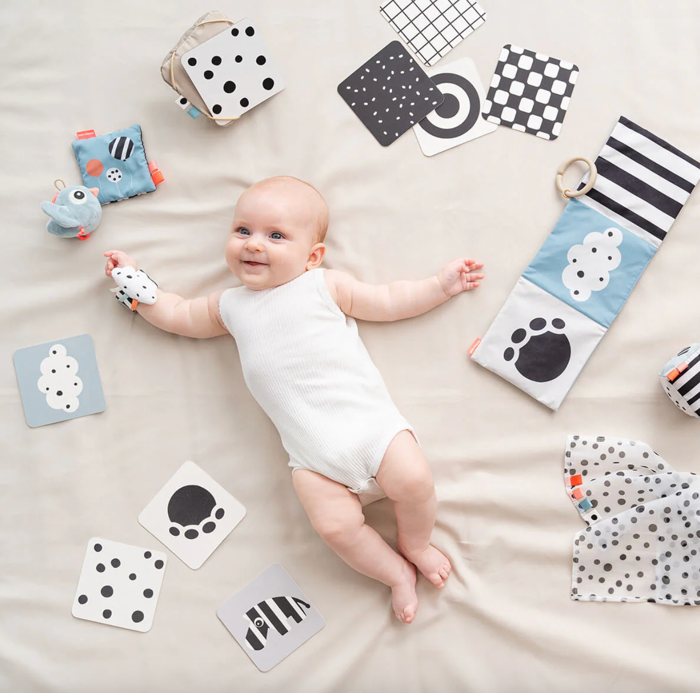 Utiles pour les temps d'éveil sur le ventre ou le change, ces cartes offrent des expériences visuelles attrayantes.