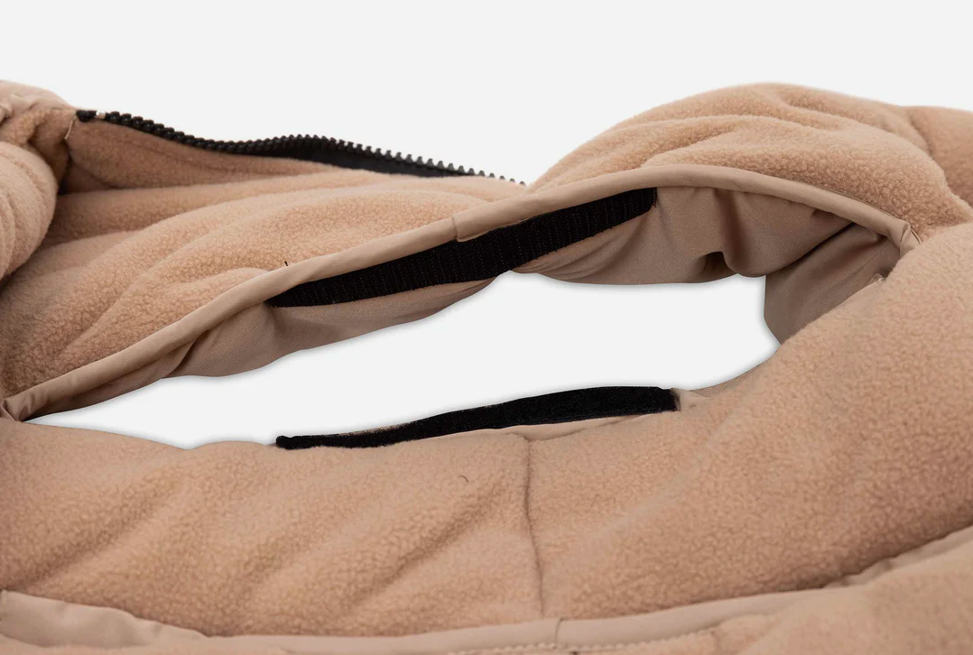 Elle dispose d'une fermeture éclair sur le côté pour installer et sortir votre mini facilement. La partie supérieure est arrondie de sorte que sa tête reste bien au chaud.