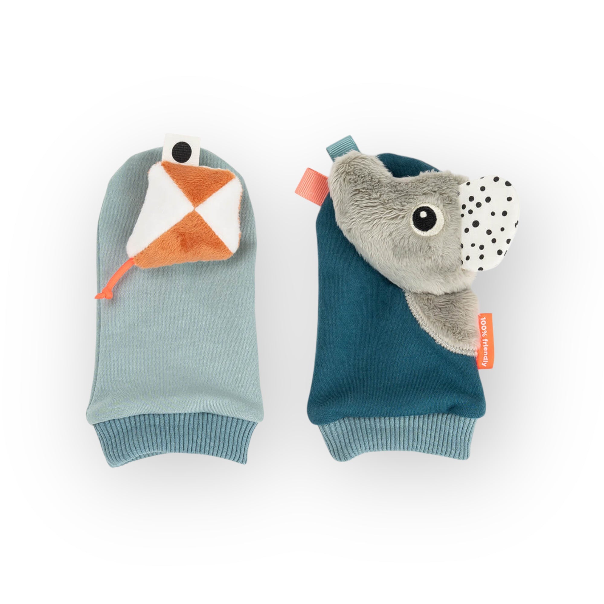 Bébé découvre ses pieds et s'éveille au son des oreilles de l'éléphant et au bruit du grelot du cerf-volant. Il gesticule, attrape et secoue pour éveiller tous ses sens ! Tu sens comme l'éléphant est doux ?