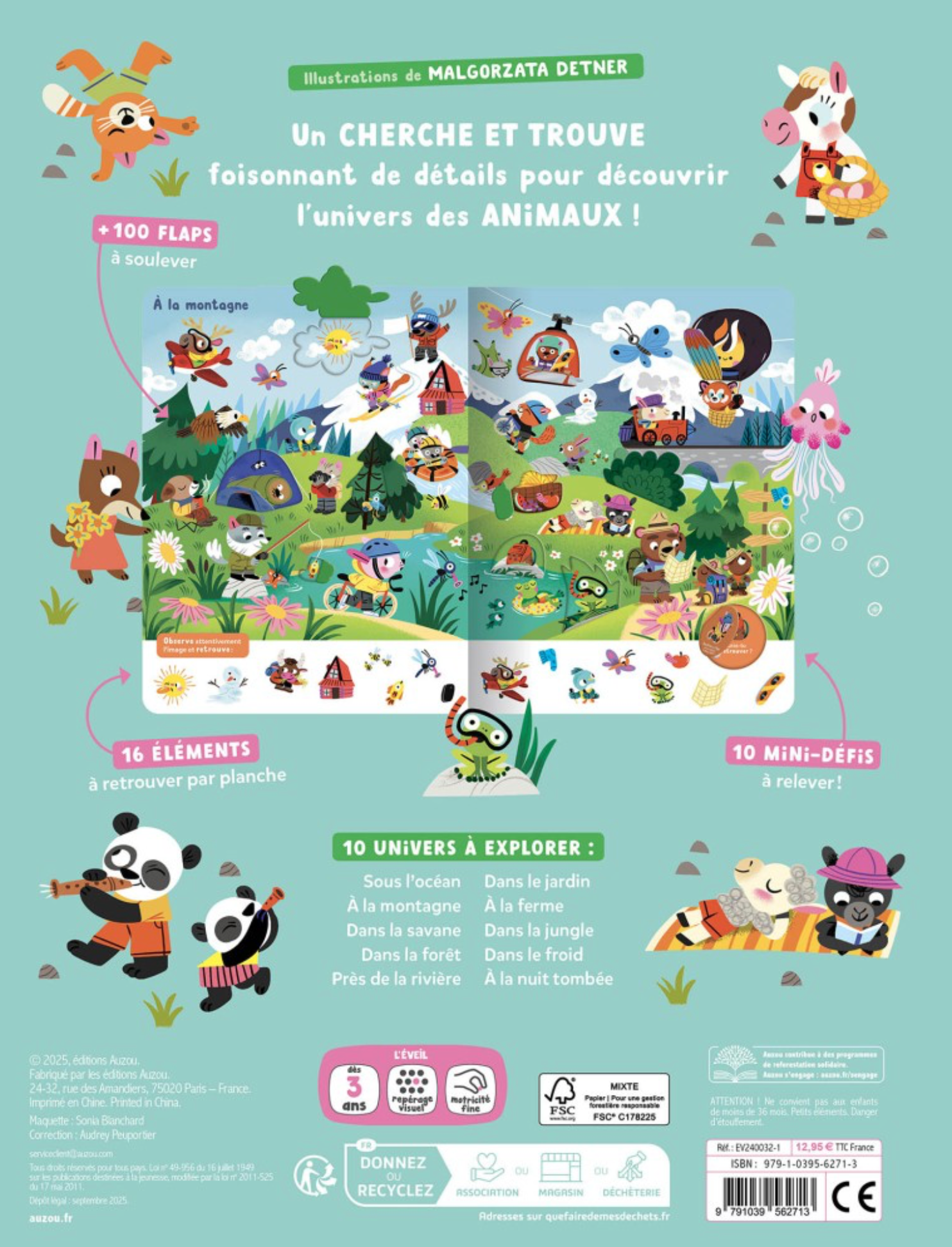 Un cherche et trouve conçu spécialement pour les enfants de 3 à 6 ans, foisonnant de détails pour explorer le monde des animaux en s'amusant !
