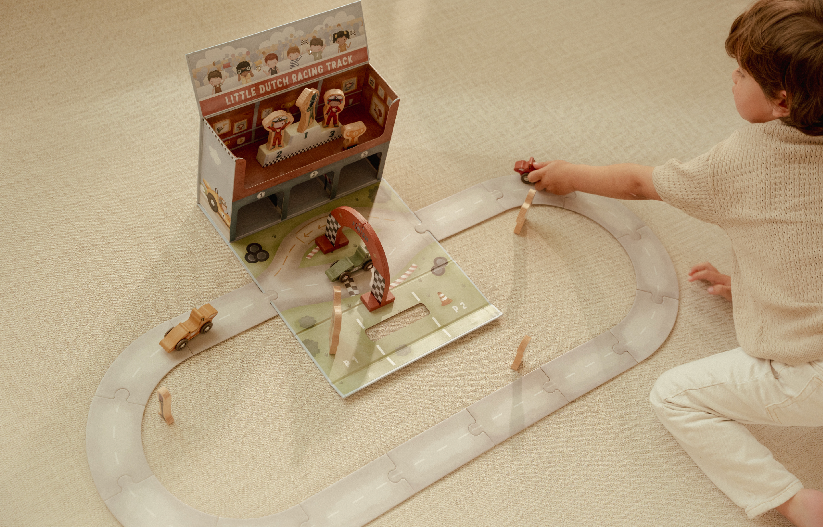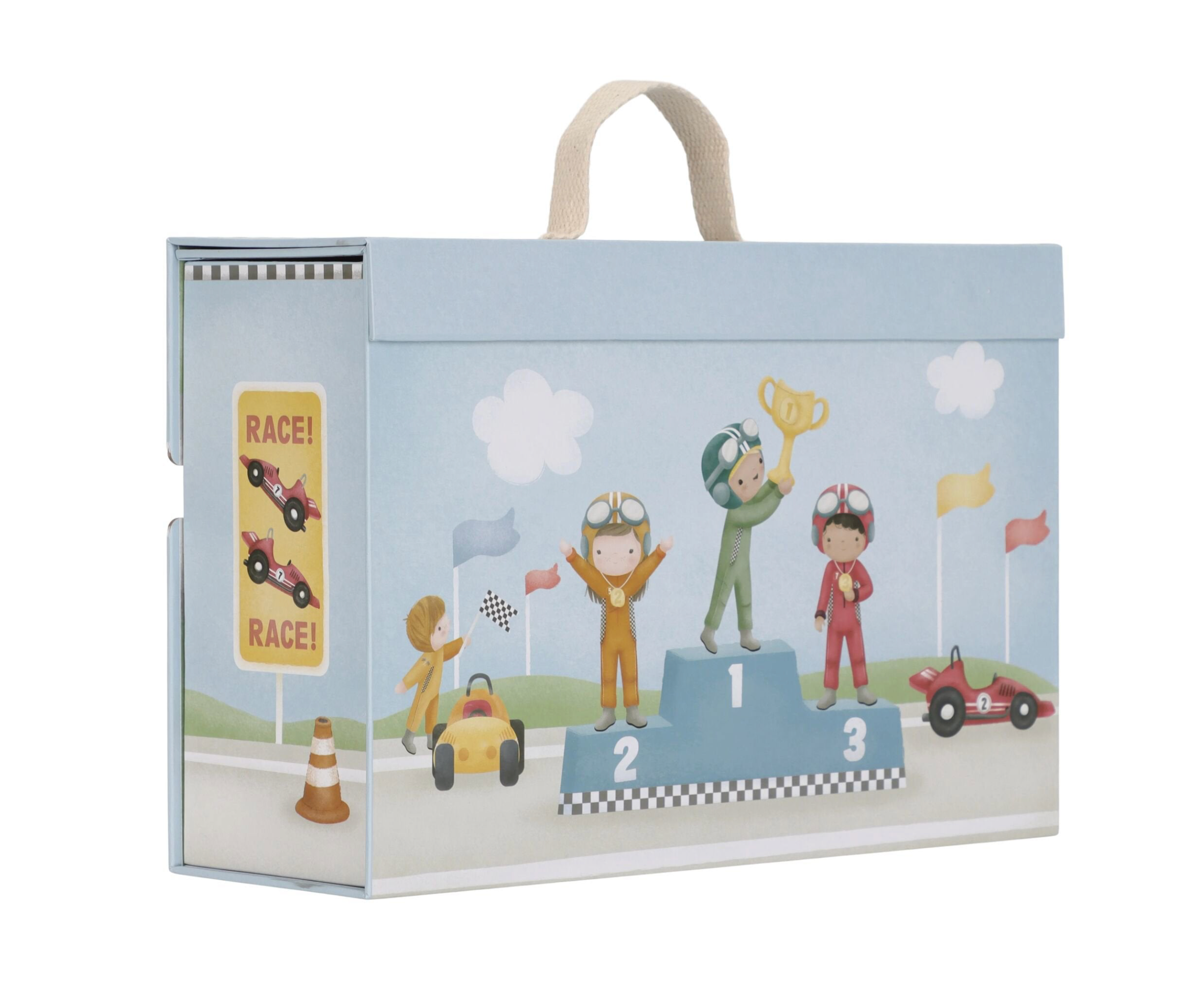 Mallette astucieuse et portable qui se transforme en circuit complet pour un jeu facile à installer et à ranger. Pièces en carton robustes à assembler comme un puzzle, favorisant la motricité fine et la créativité. Accessoires inclus pour un jeu complet et immersif.