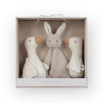 Un cadeau de naissance idéal, prêt à offrir dans un magnifique coffret contant trois produits plein de douceur. Le coffret comprend une collection de premiers jouets doux, sélectionnés avec soin, conçus pour les petites mains et les grandes découvertes. Dans des tons subtils et naturels et fabriqué à partir des matériaux les plus nobles, ce coffret offre confort, plaisir du jeu et sentiment de sécurité.