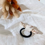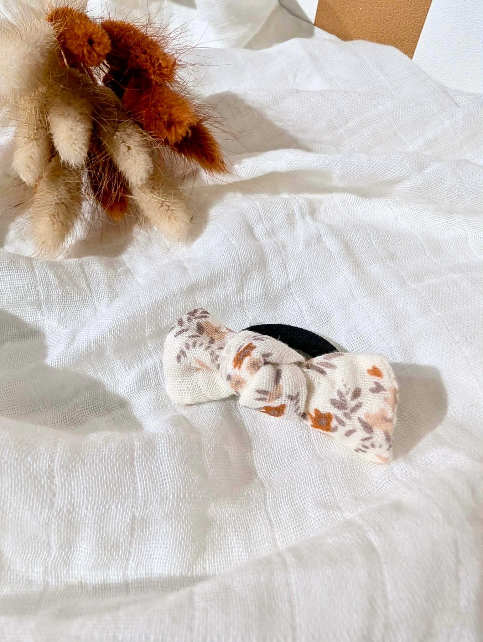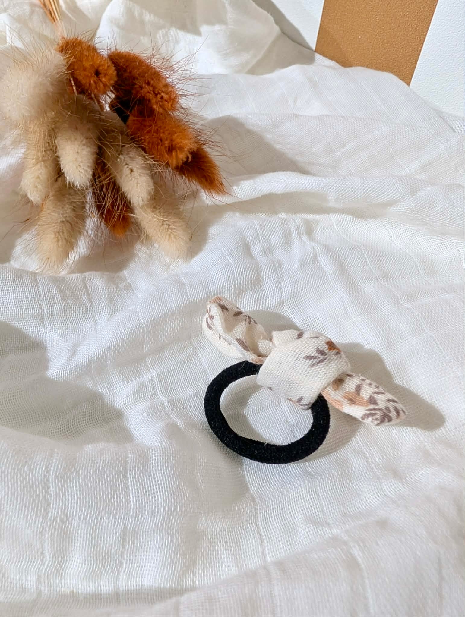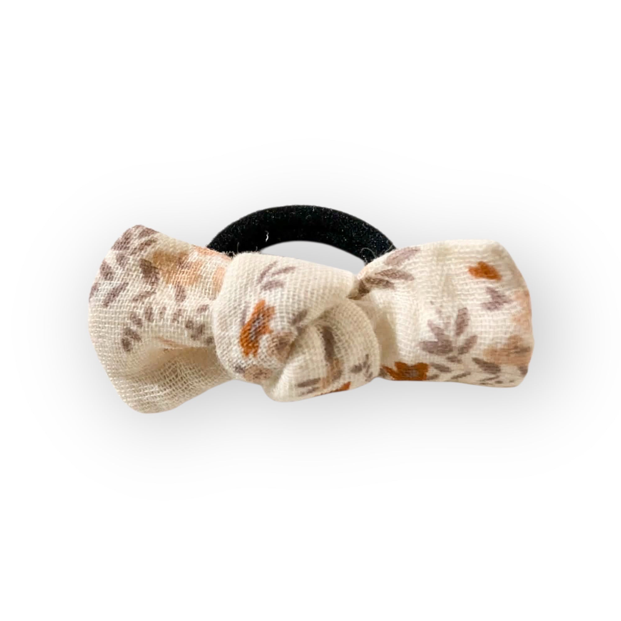 Un joli petit élastique avec un noeud en tissu pour faire le plus belles coiffures à votre mini.