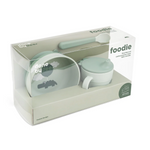 Le set de premier repas Foodie est conçu pour la vie quotidienne des enfants et passe au lave-vaisselle et au micro-ondes. Une fois que le coffret a rempli sa fonction au cours d'innombrables coffrets repas, il peut être trié en tant que plastique et recyclé en de nouveaux produits de la vie quotidienne.