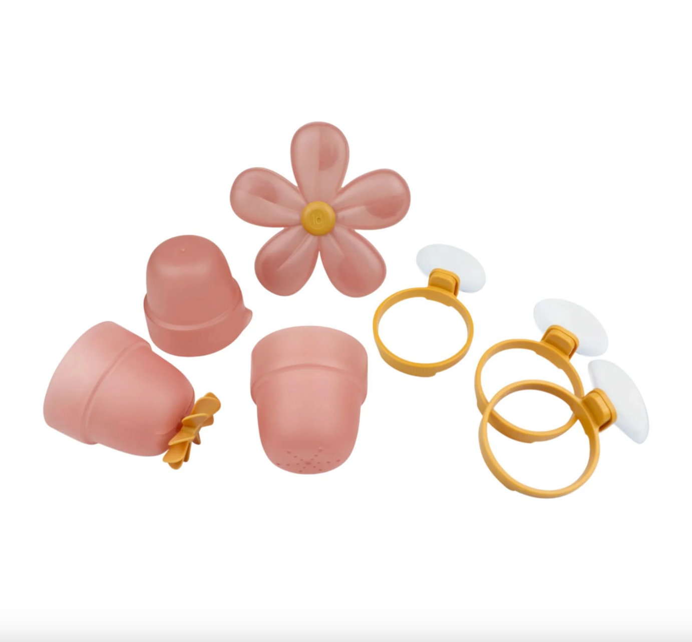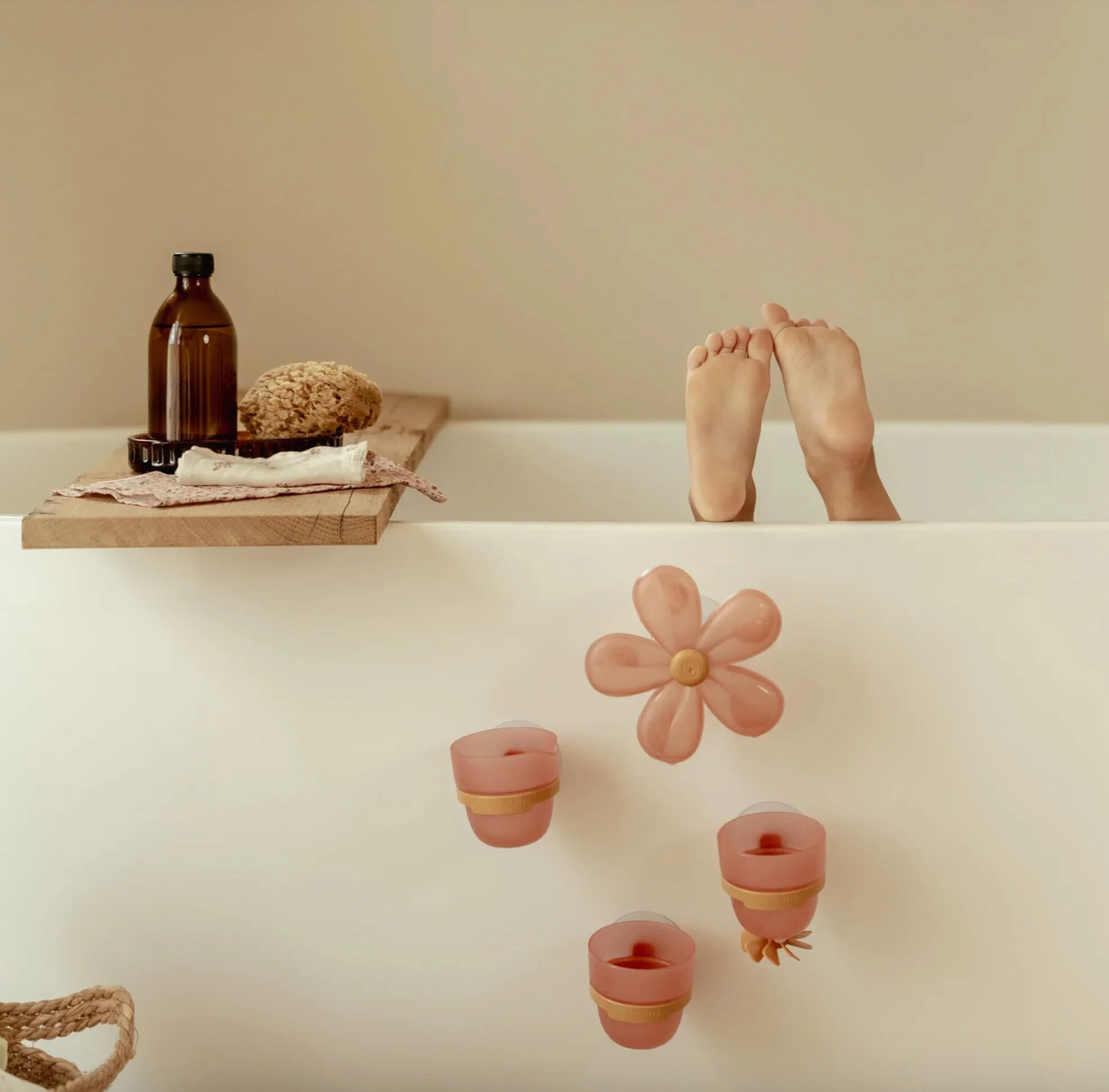 Transformez l'heure du bain en fête avec cet ensemble de gobelets de bain rose ! L'ensemble comprend une roue tournante en forme de fleur, deux gobelets de bain joyeux et une tasse verseuse pratique. Avec les ventouses, vous pouvez facilement les accrocher au mur de la baignoire ou de la douche. Versez de l'eau dans la fleur et regardez la roue commencer à tourner. Jouer avec l'eau stimule la curiosité et développe la motricité. Place à de belles aventures aquatiques !
