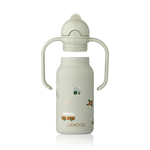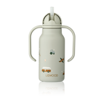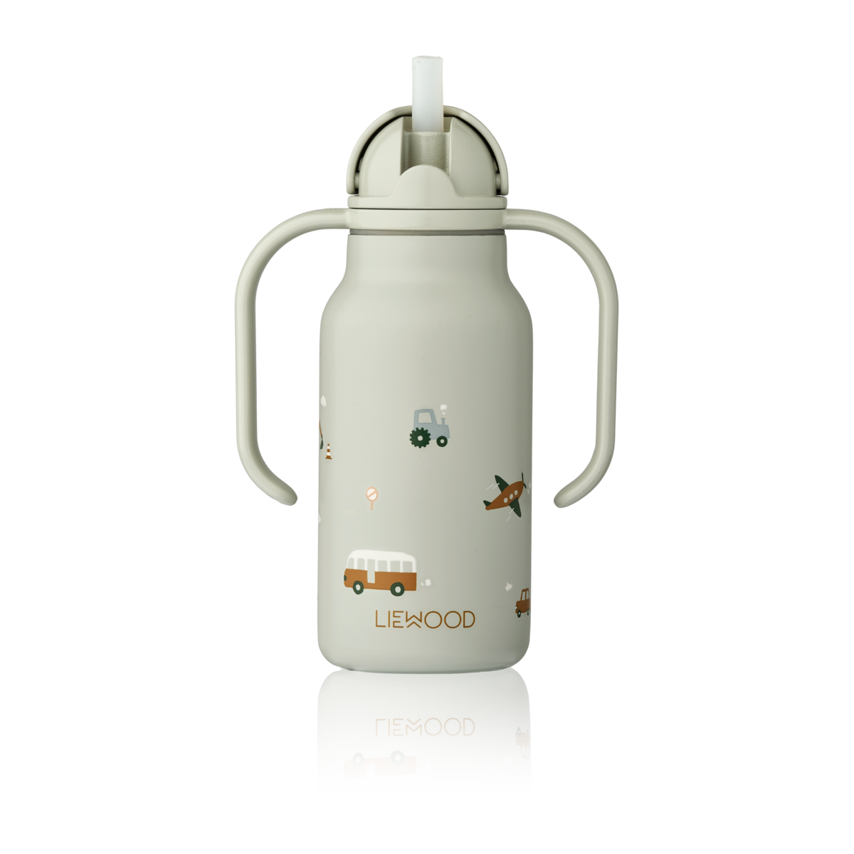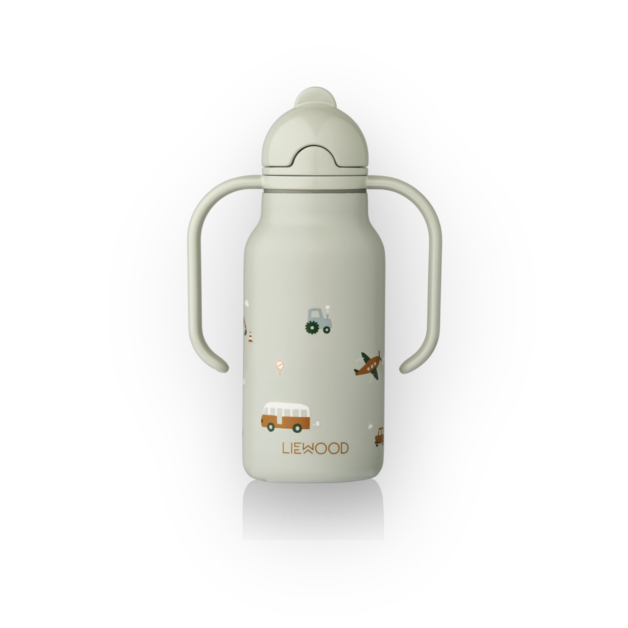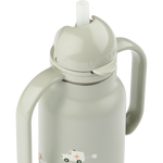 Cette gourde innovante et adaptée aux tout-petits possède deux poignées faciles à manipuler ainsi qu'une paille intégrée, et est fabriquée en acier inoxydable. Elle est conçue pour être facilement manipulée par les petites mains apprenant à incliner et boire de l'eau seules.
