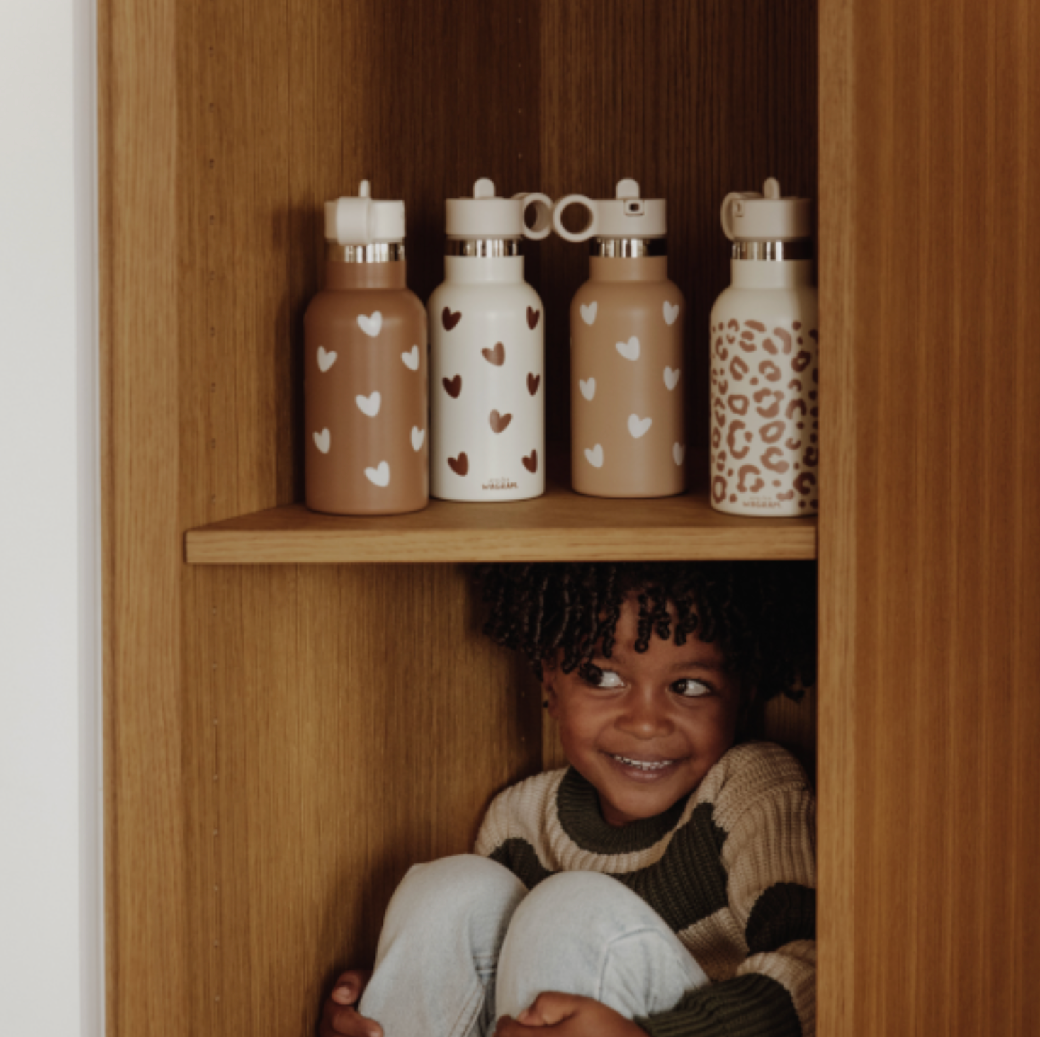 La gourde en métal est robuste et possède une paille cachée très pratique. Elle est parfaite pour le sac à dos de votre mini ou à la maison dans le jardin pour une boisson sans guêpes en été. Elle est livrée avec une paille.
