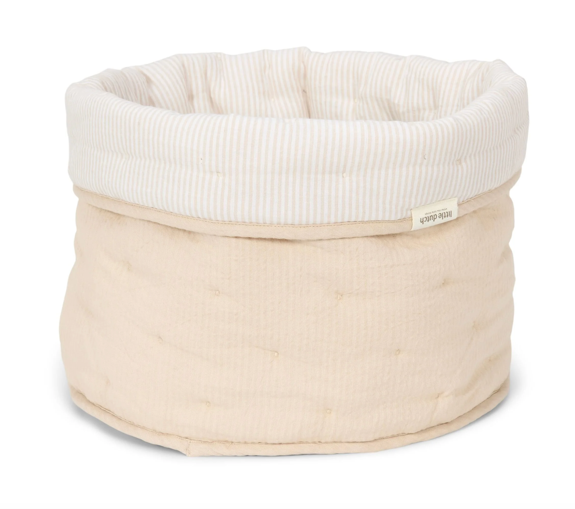 Gardez la chambre d'enfant organisée et bien rangée avec ce panier de rangement matelassé décoratif. Fabriqué en popeline de coton biologique 100% de haute qualité, ce panier rond offre à la fois style et fonctionnalité. Réversible avec un bord replié, parfait pour ranger des jouets, langes ou autres accessoires, afin que la chambre soit ordonnée et offre de l'espace.
