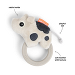Ce hochet sensoriel ludique est conçu pour apaiser et éveiller les sens de votre bébé. L'anneau de dentition est idéal pour soulager les gencives irritées, tandis que le hochet et les différentes textures stimulent sa motricité et l'encouragent à explorer.