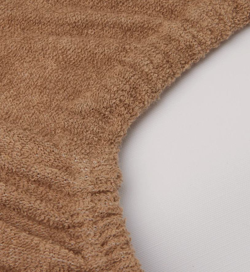 Housse en tissu éponge qui s'adapte parfaitement au matelas à langer grâce aux bords élastiques. Le tissu est doux et extensible.