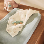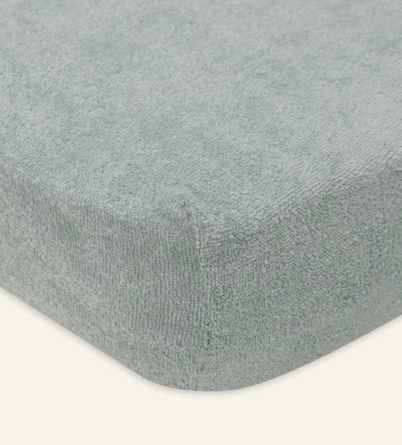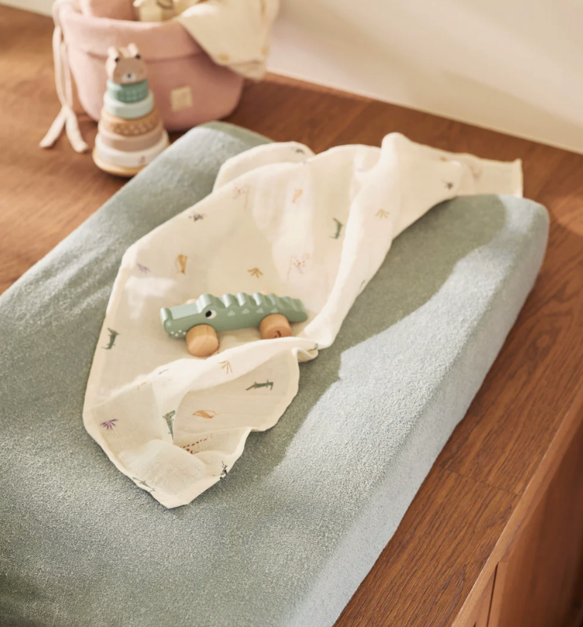 Housse en tissu éponge qui s'adapte parfaitement au matelas à langer grâce aux bords élastiques. Le tissu est doux et extensible.