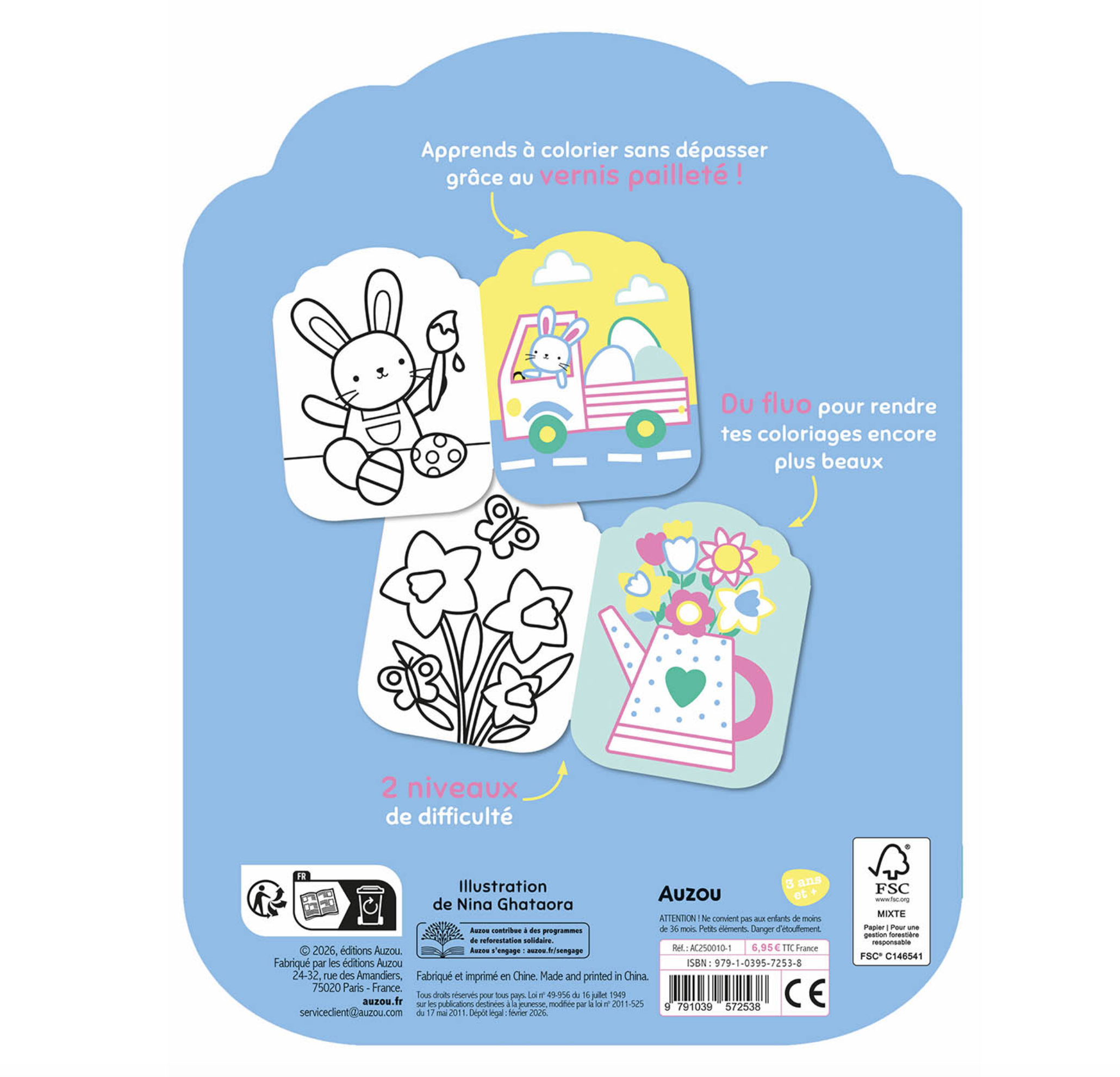 Découvre tes nouveaux coloriages fluos sur le thème des animaux de Pâques avec deux niveaux de difficulté : le premier niveau pour apprendre à bien colorier sans dépasser avec l'aide du vernis à paillettes en relief et le deuxième niveau sans relief pour montrer tes talents !