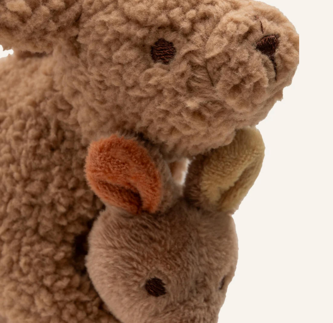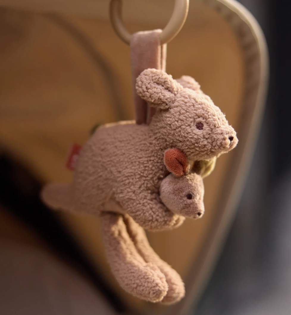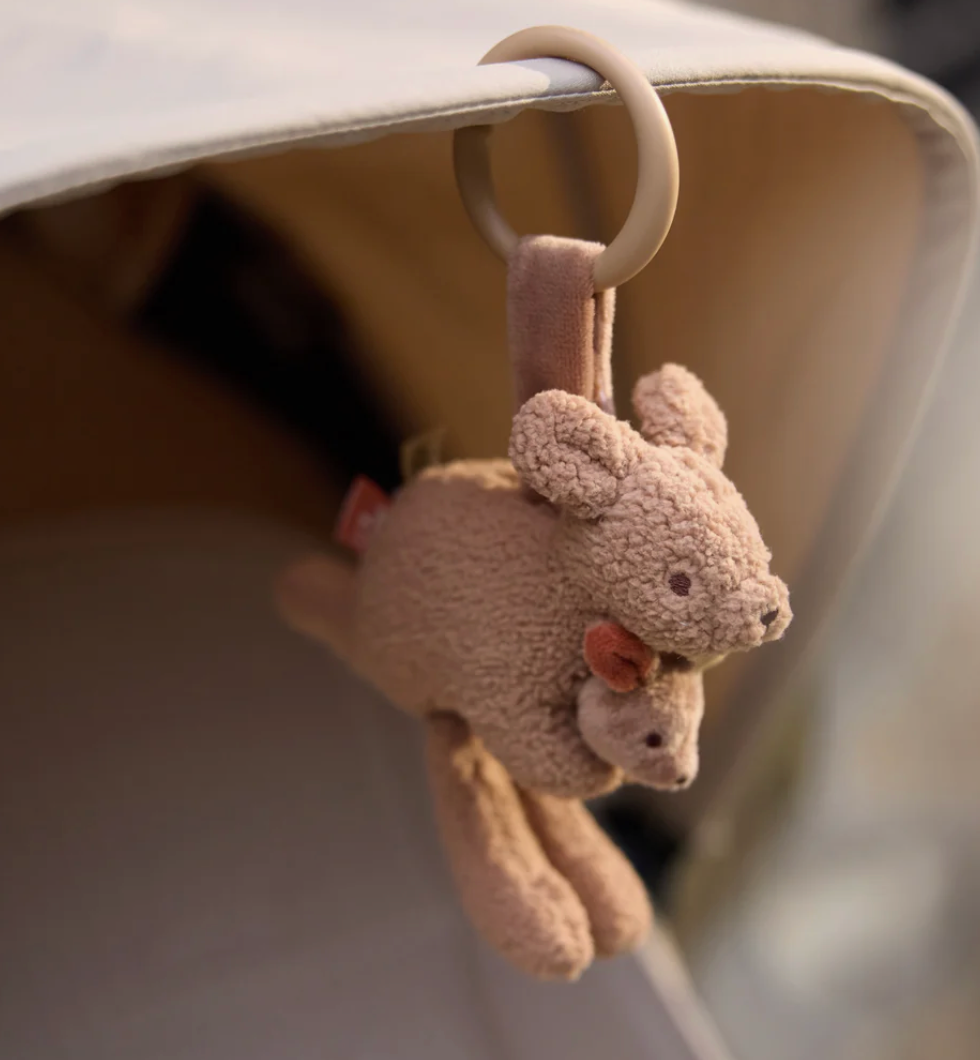 Fixez facilement le kangourou à la poussette ou au siège auto grâce à l'anneau pour que votre bébé ait toujours de quoi s'émerveiller à portée de main. La douce maman kangourou porte son bébé en toute sécurité dans sa poche. Ensemble, ils forment un duo câlin qui apporte chaleur et réconfort en promenade.