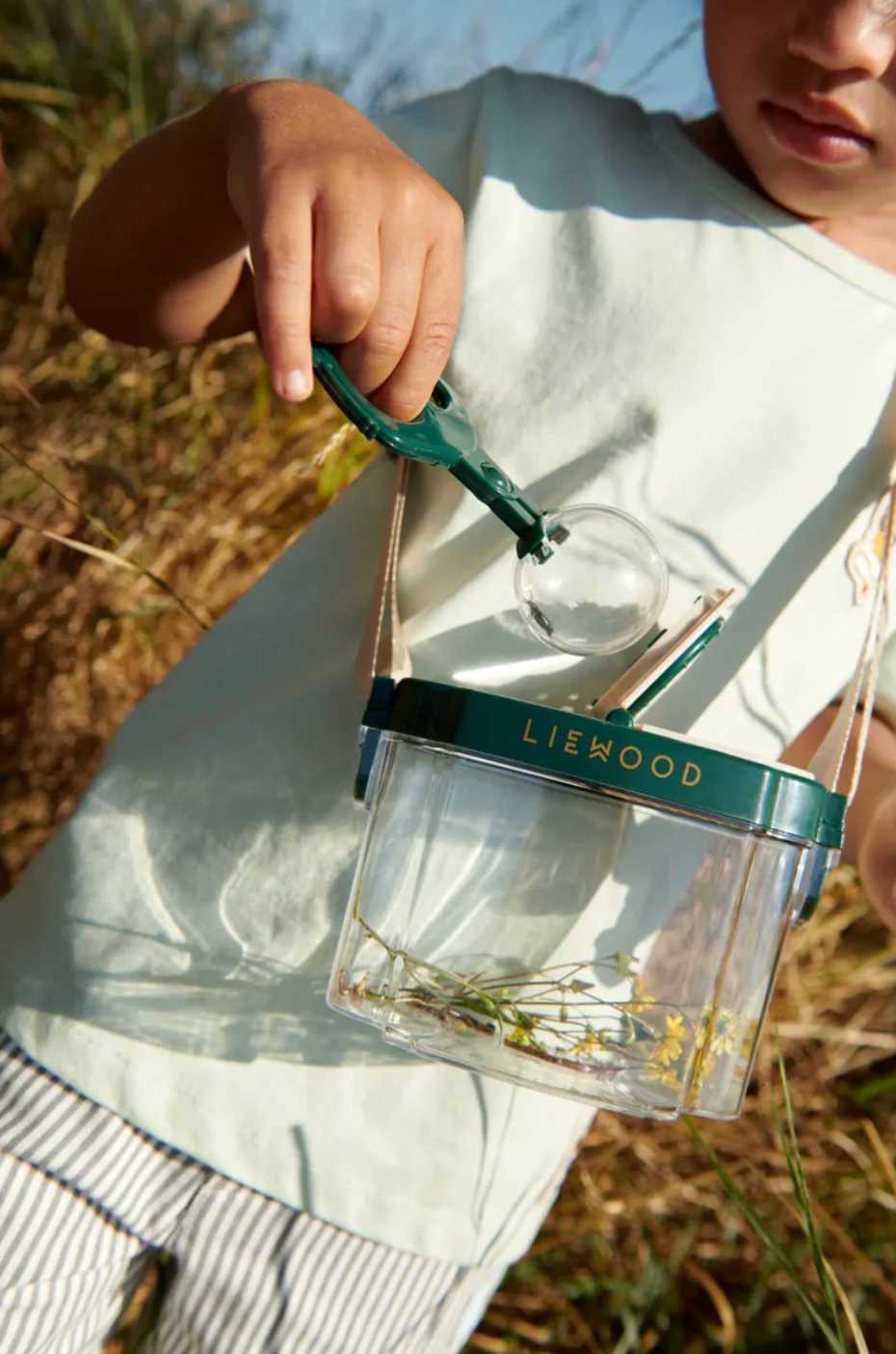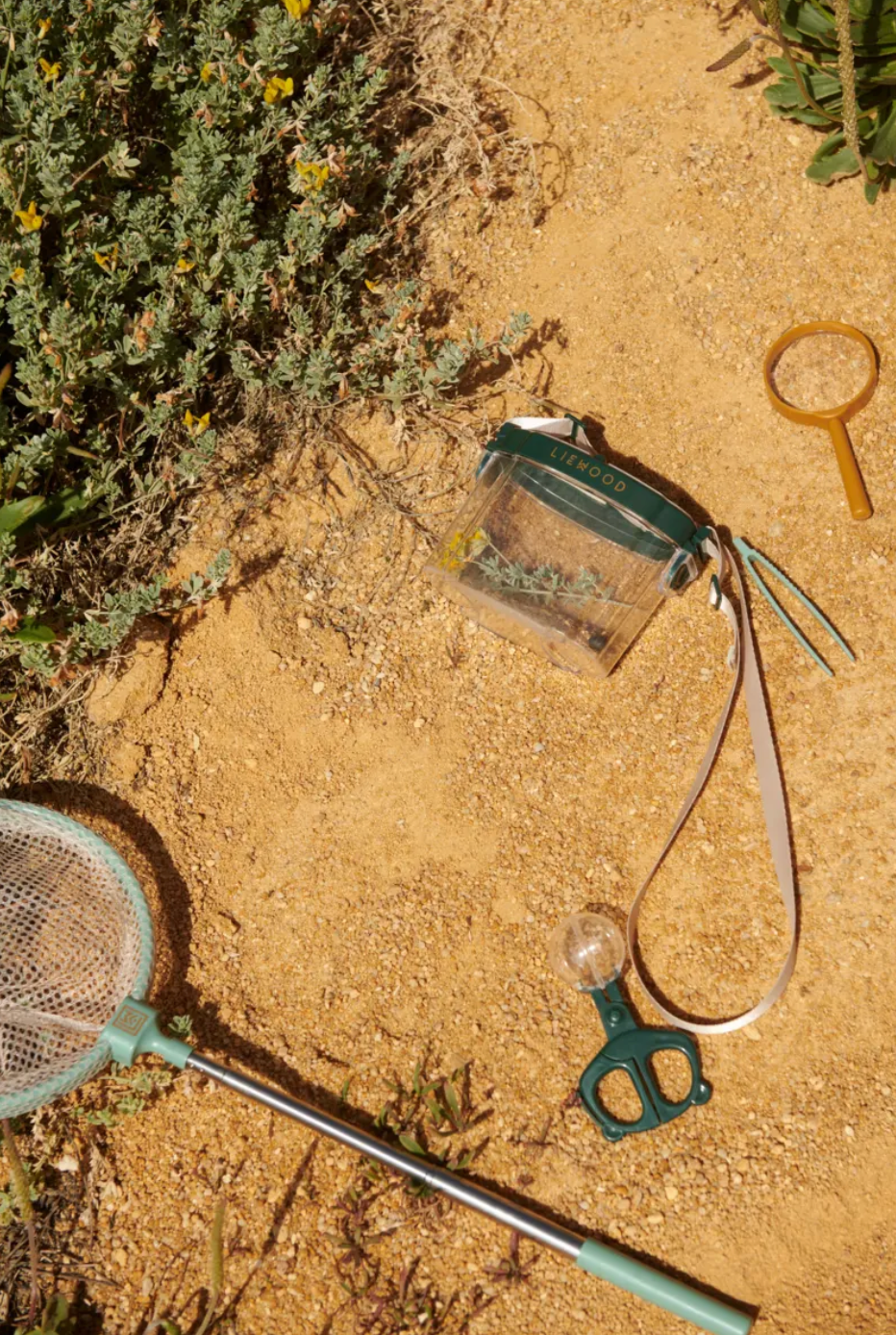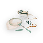 Le kit contient tout ce dont votre enfant a besoin pour étudier et observer les petits insectes et éléments de la nature environnante: une loupe, un attrape-insectes, une pince à épiler, un filet à manche télescopique et un récipient transparent
