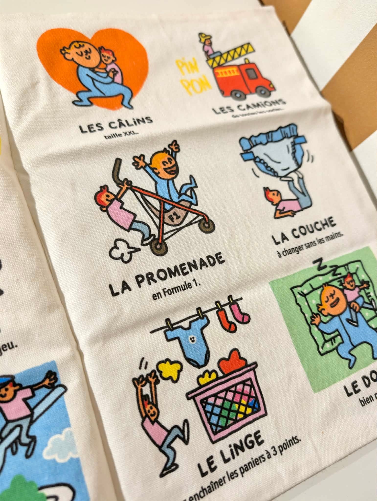 Ce livre bébé en tissu crépite quand on le manipule. Les tout-petits ne se lasseront pas de froisser, serrer, secouer, tourner les pages colorées. Cette gazette sur le meilleur des papas révèle des images et du vocabulaire que bébé va pouvoir développer au sein car, OUI, même les bébés ont le droit de lire le journal !