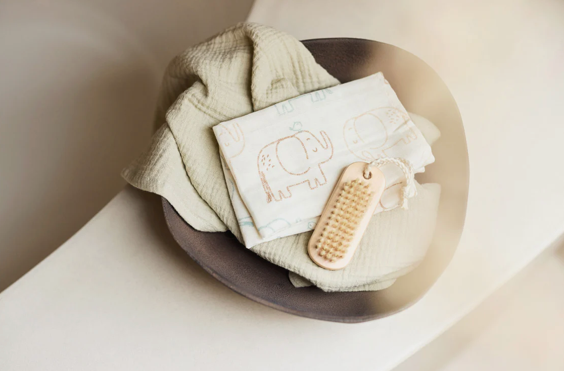 - serviette après le bain: le gaze de coton est très absorbant et avec le tissu fin on peut tapoter doucement la peau pour la sécher entre les plis. Le tissu doux protège la peau délicate de bébé.