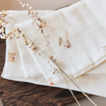 - serviette après le bain: le gaze de coton est très absorbant et avec le tissu fin on peut tapoter doucement la peau pour la sécher entre les plis. Le tissu doux protège la peau délicate de bébé.