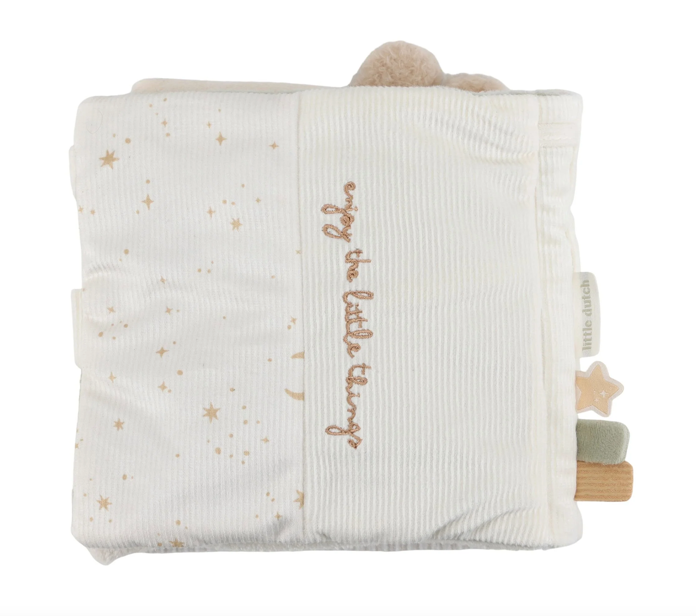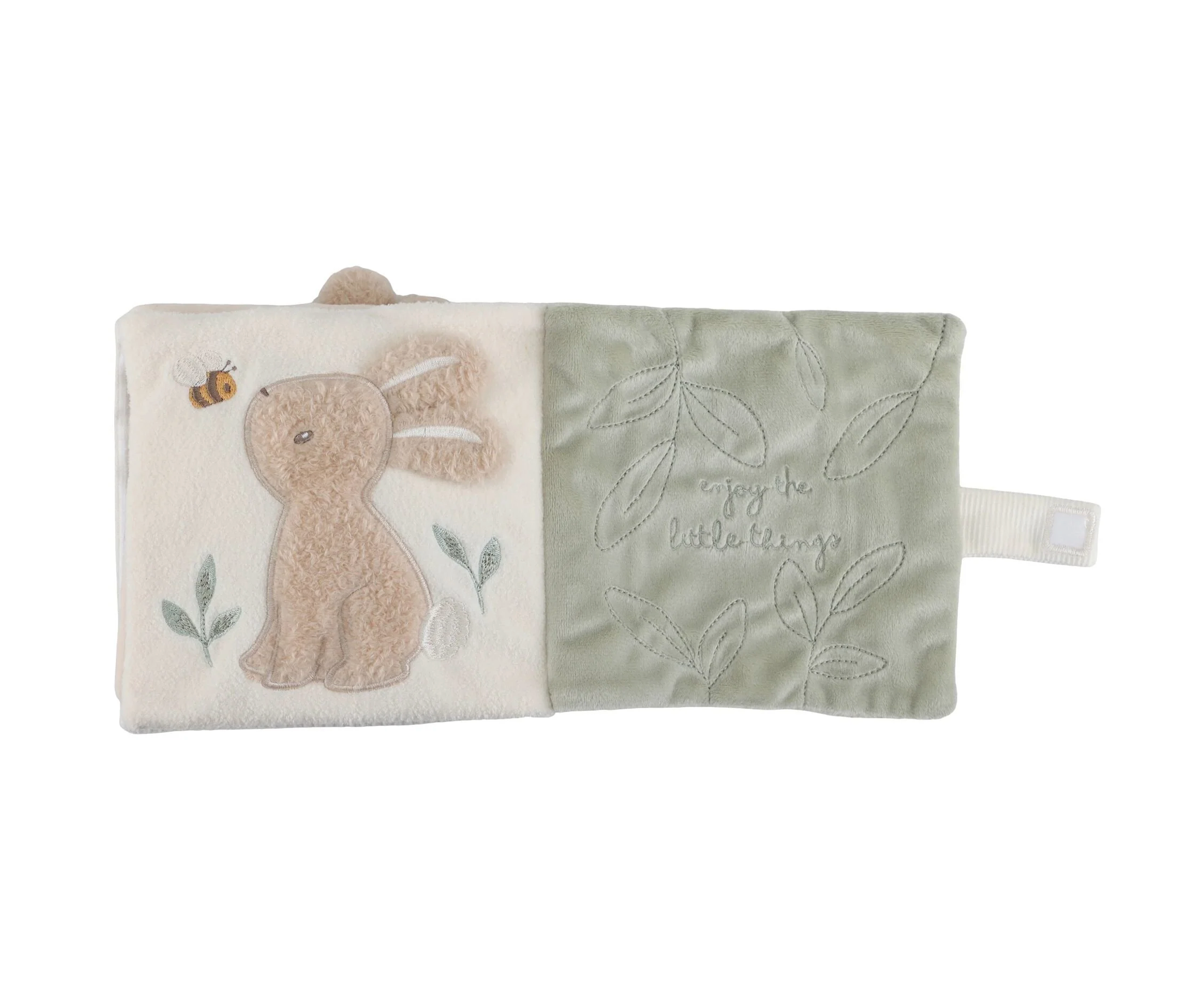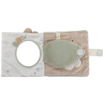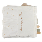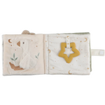 On ne s'ennuie jamais avec ce livre d'activités à toucher aux côté d'un adorable lapin et d'une jolie oie. Conçu pour éveiller les sens et stimuler la motricité, ce livre en tissu propose une variété de textures, un miroir caché par une feuille en tissu bruissant, un hochet lune, un anneau de dentition étoile et des étiquettes à attrapper au toucher agréable. Chaque page réserve son lot de découvertes pour encourager la coordination œil-main tout en s’amusant. Léger et facile à manipuler, il accompagnera bébé dès la naissance pour des moments de jeu et d’éveil inoubliables. Un compagnon sensoriel et tout doux, idéal pour émerveiller les petits explorateurs !