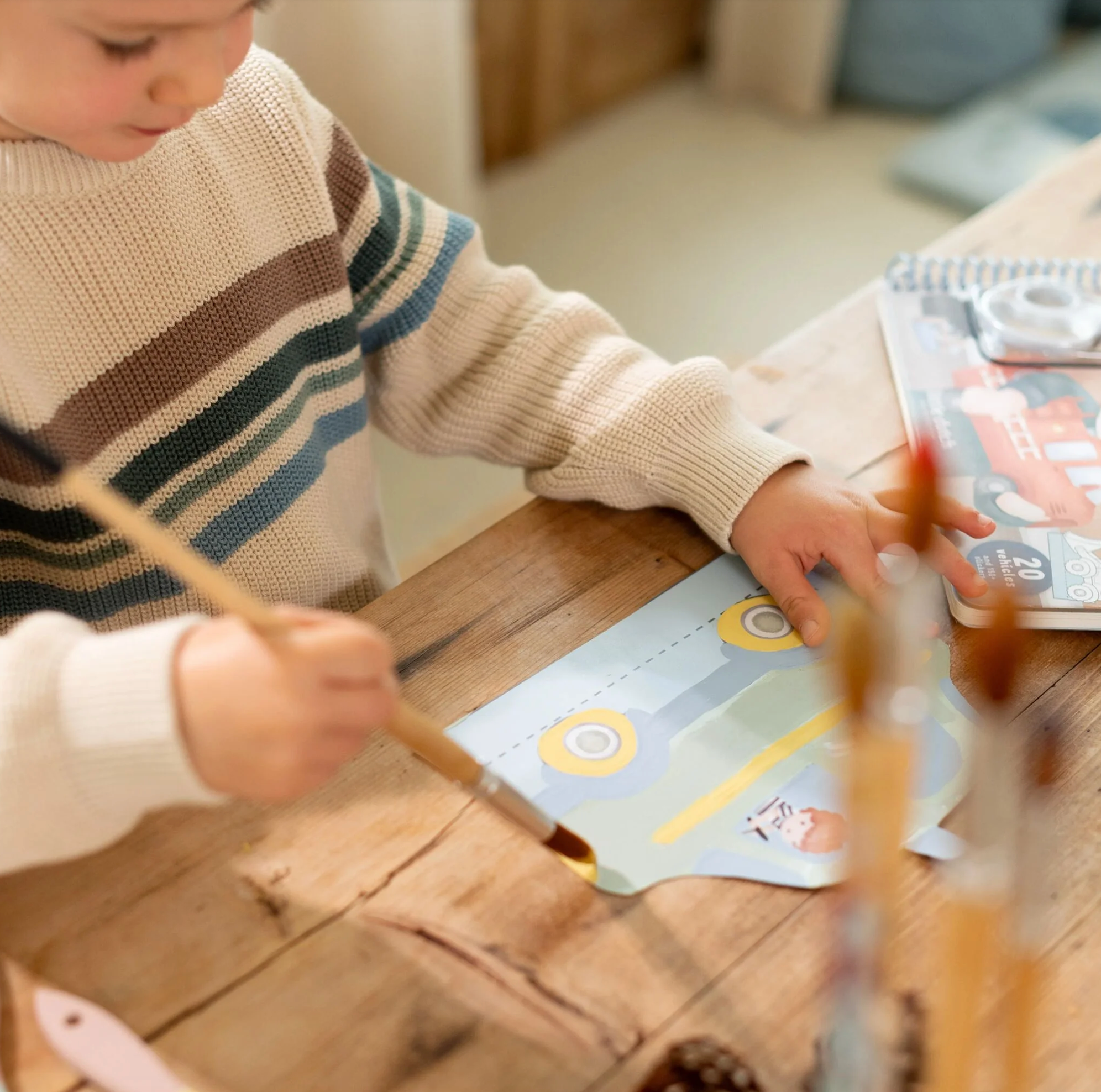 Laissez l'imagination de votre mini prendre vie avec ce joyeux livre de découpage. Découpez les voitures et décorez-les avec les autocollants colorés. Avec les ciseaux fournis et 20 pages pleines de jolis motifs, chaque moment de bricolage est une fête. Fabriqué en papier solide, parfait pour des aventures créatives ensemble.