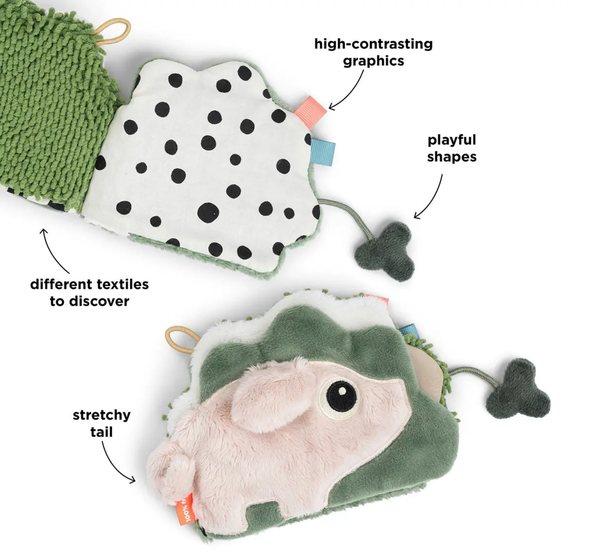 Votre enfant adorera découvrir qui se cache derrière les buissons, ajoutant une touche de surprise à chaque page. Grâce à sa boucle élastique, le livre s'attache facilement à un tapis d'éveil ou à d'autres supports, pour l'avoir toujours à portée de main et s'amuser partout.