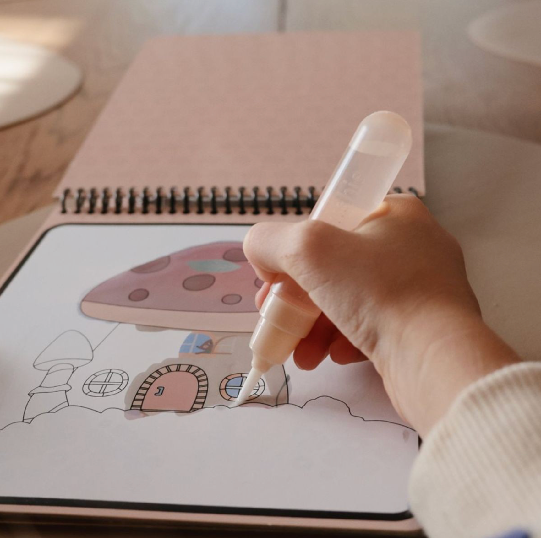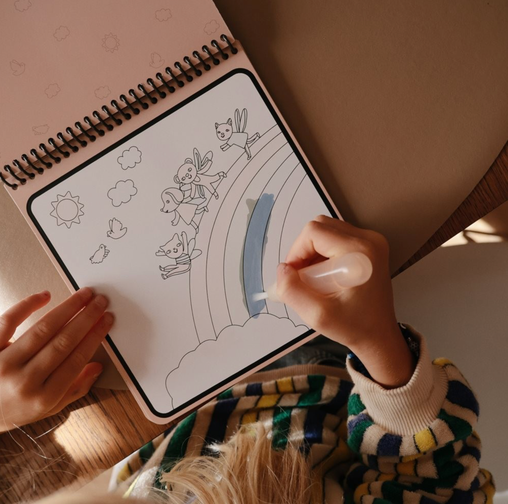 Grâce au pinceau rechargeable inclus, les petites mains peuvent facilement peindre sans salir. Une fois sèches, les pages redeviennent blanches et sont prêtes à être redécouvertes – encore et encore.