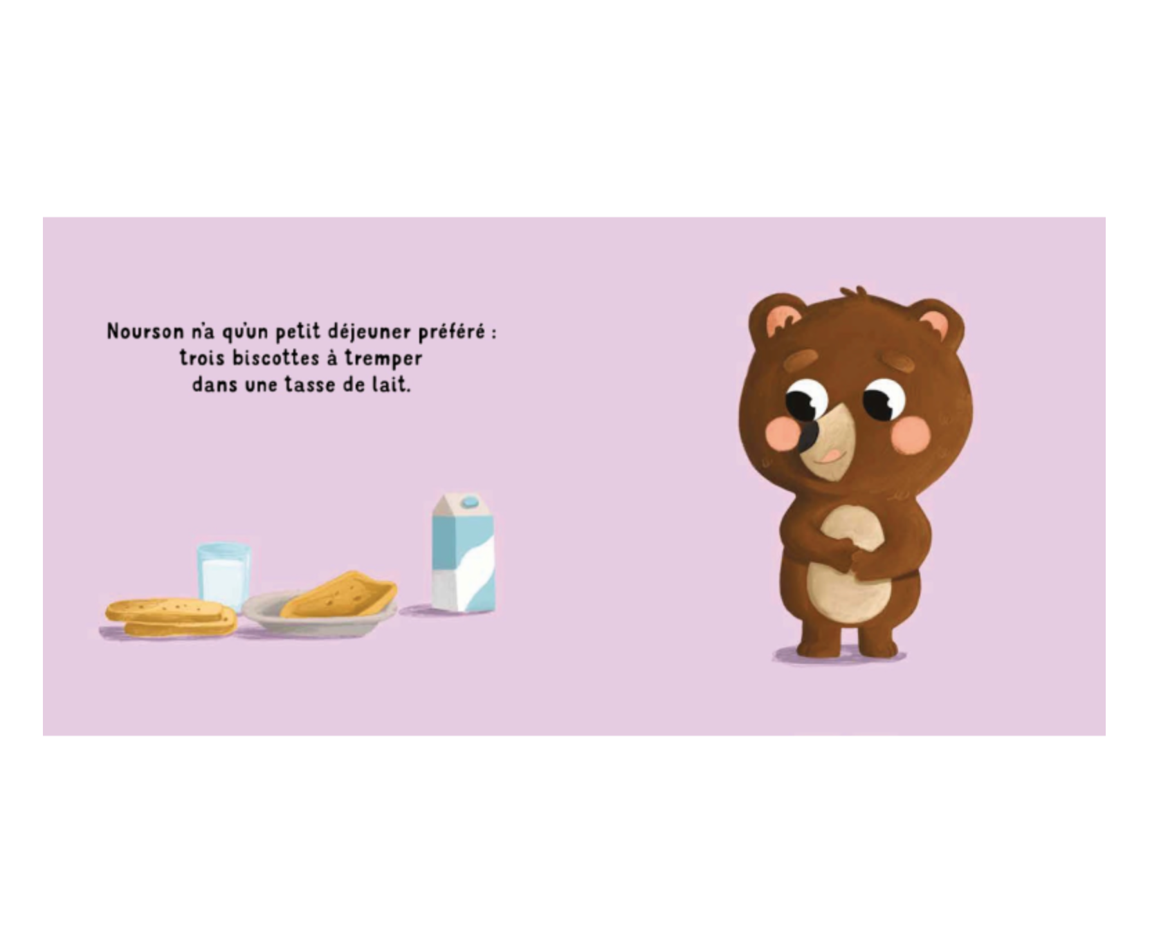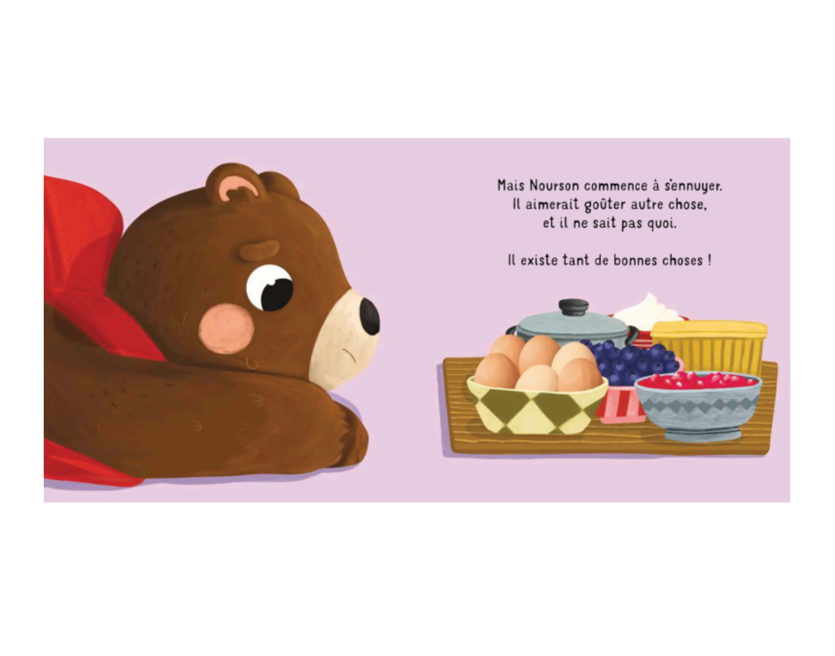 C’est dans la nature des enfants d’être routiniers, surtout en ce qui concerne la nourriture. C’est pareil pour Nourson : lui aussi veut toujours prendre le même petit déjeuner. Mais en découvrant que ses camarades de classe mangent des choses différentes, il veut les essayer aussi. Et il découvrira que goûter de nouvelles saveurs n’est pas si mal après tout !