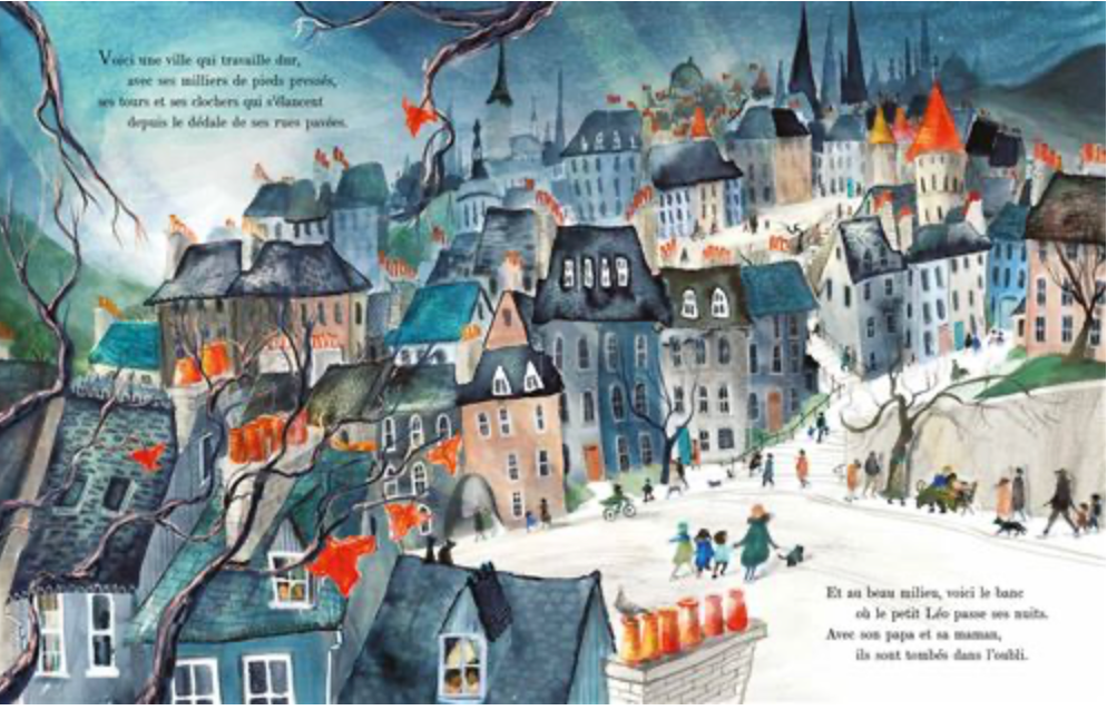 "Léo et ses parents vivent dans une grande ville pleine d'animation, mais ils n'ont pas de maison. Ils dorment sur un banc, ignorés par les gens qui passent devant eux tous les jours.