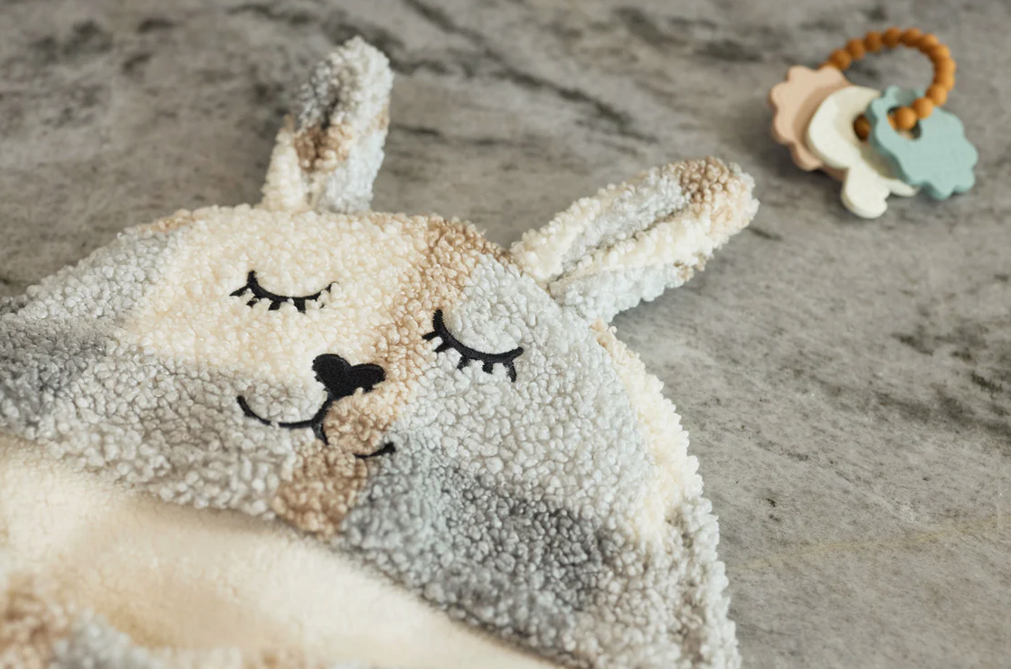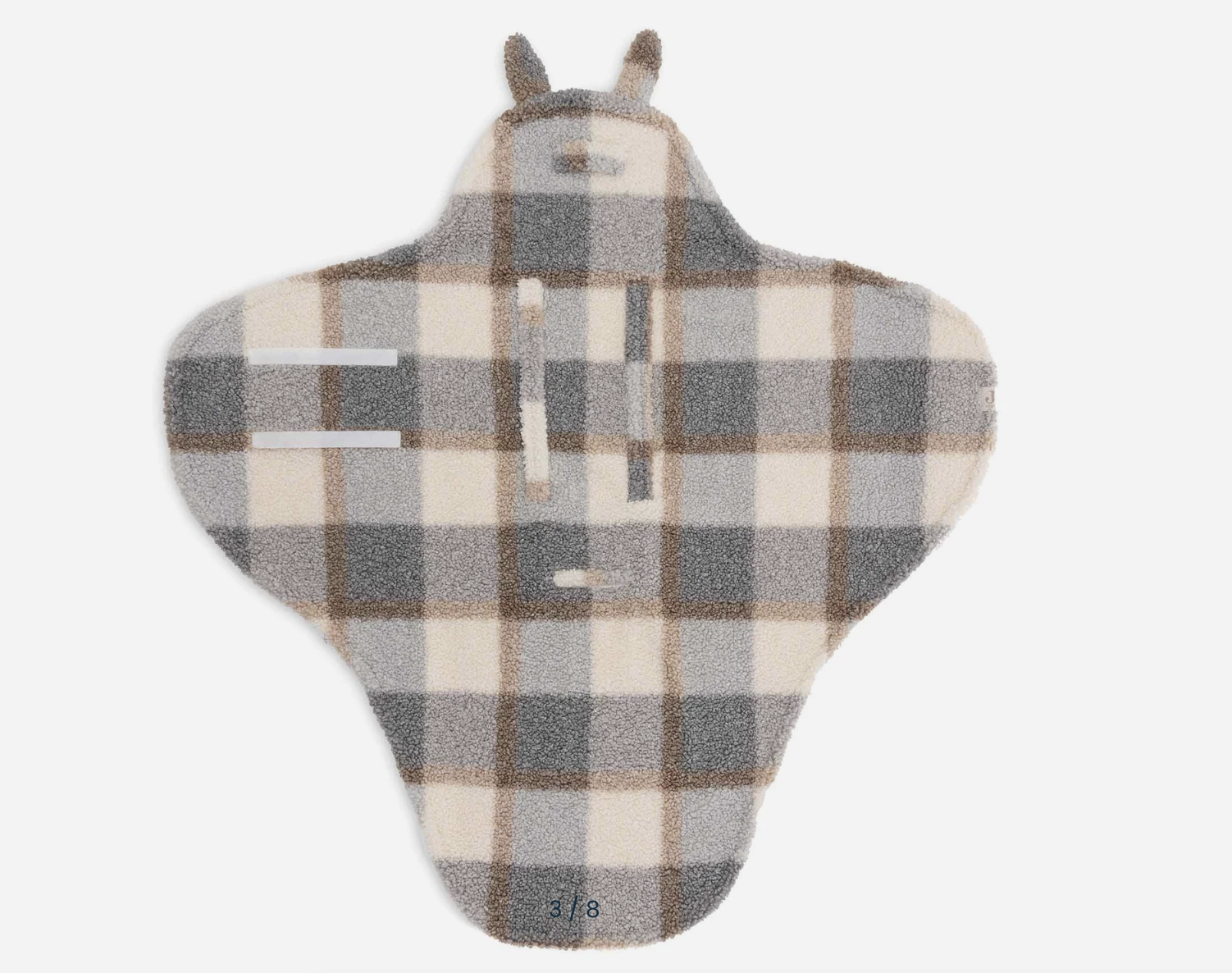 Enveloppez votre bébé dans cette couverture portefeuille en tissu bouclé et fermez-la avec les bandes velcro. Mettez-lui la capuche trop mignonne et votre mini sera bien au chaud et tellement craquant !