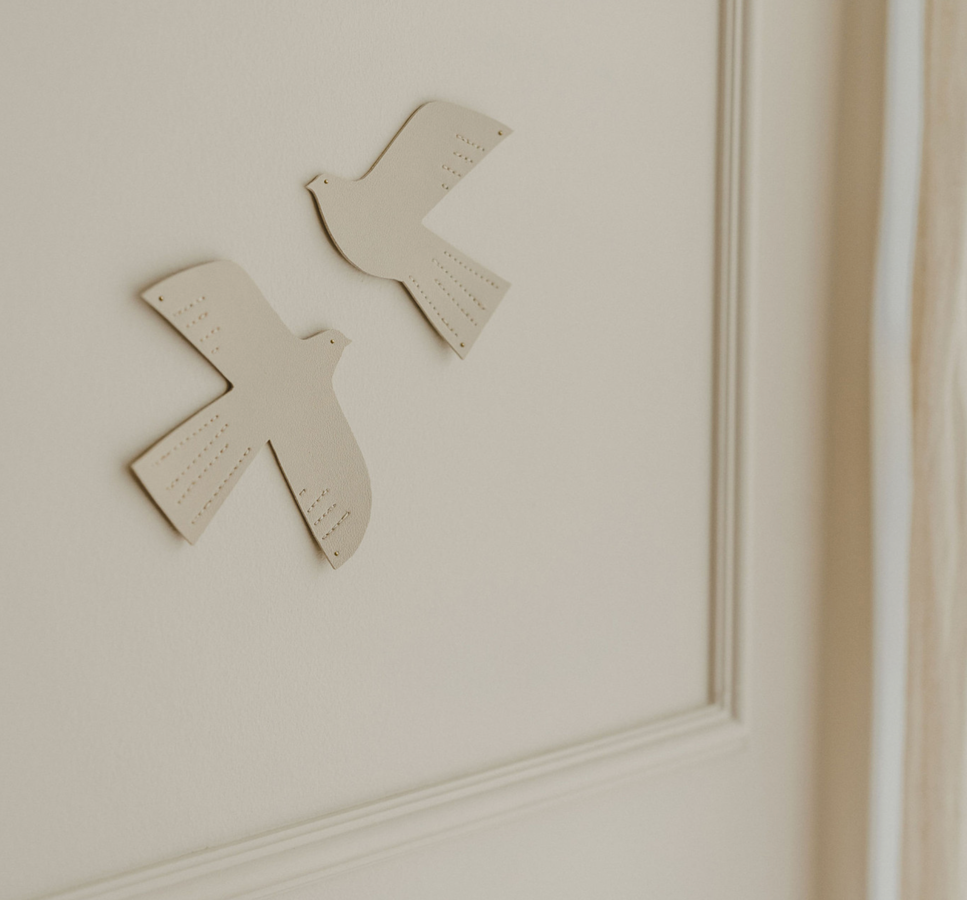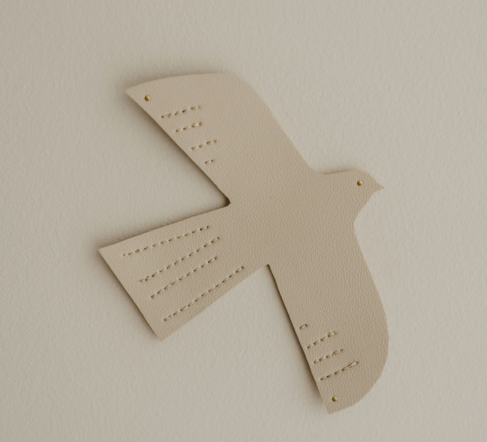 Un oiseau décoratif en cuir qui apporte une touche de poésie et de modernité à votre intérieur. Ses lignes délicates et ses détails cousus en font un objet unique, à la fois discret et raffiné. Idéal pour habiller le mur d’une chambre de bébé ou d'enfant, il se fixe facilement grâce aux trois clous dorés fournis et peut être orienté selon vos envies