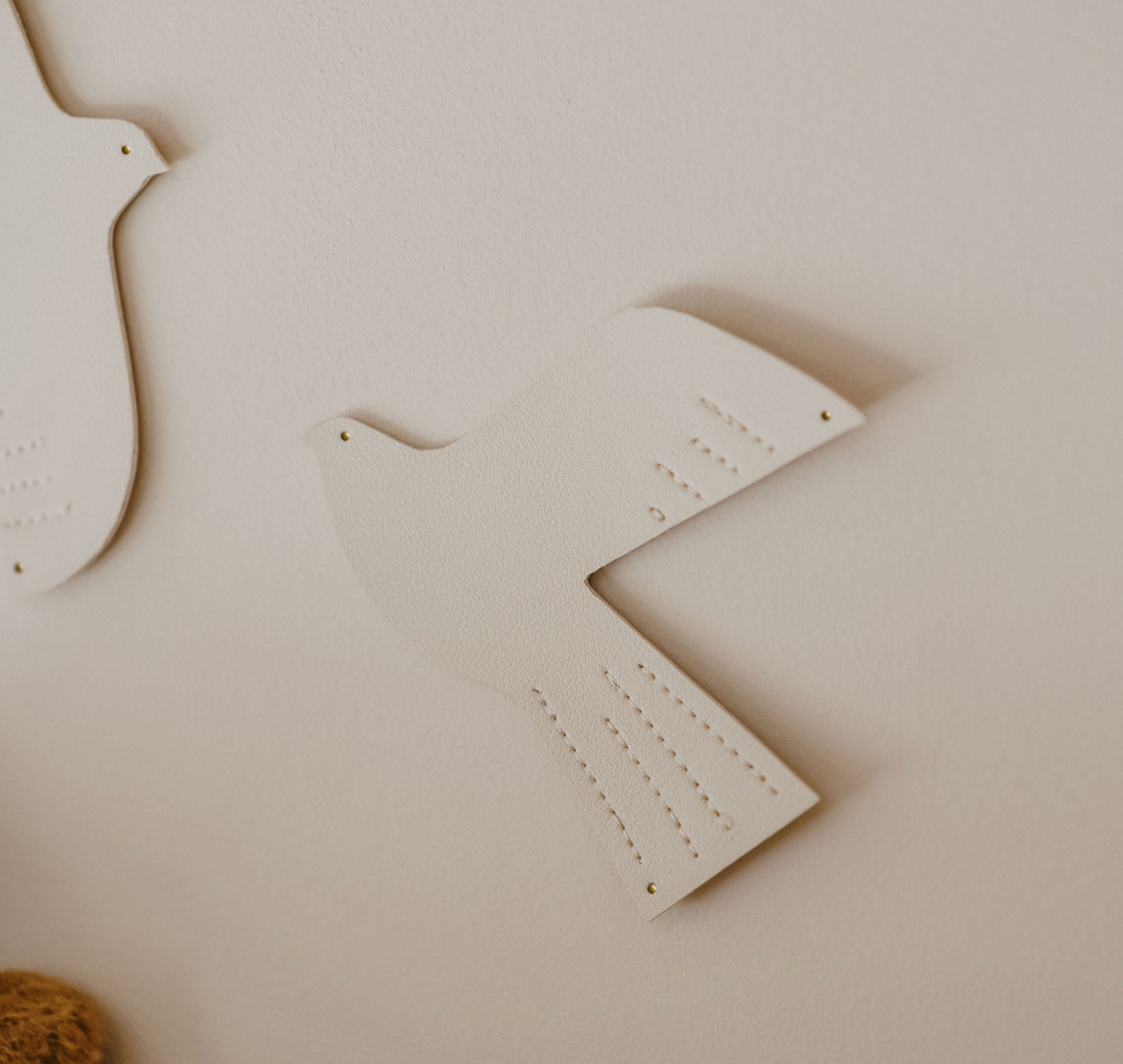 Un oiseau décoratif en cuir qui apporte une touche de poésie et de modernité à votre intérieur. Ses lignes délicates et ses détails cousus en font un objet unique, à la fois discret et raffiné. Idéal pour habiller le mur d’une chambre de bébé ou d'enfant, il se fixe facilement grâce aux trois clous dorés fournis et peut être orienté selon vos envies