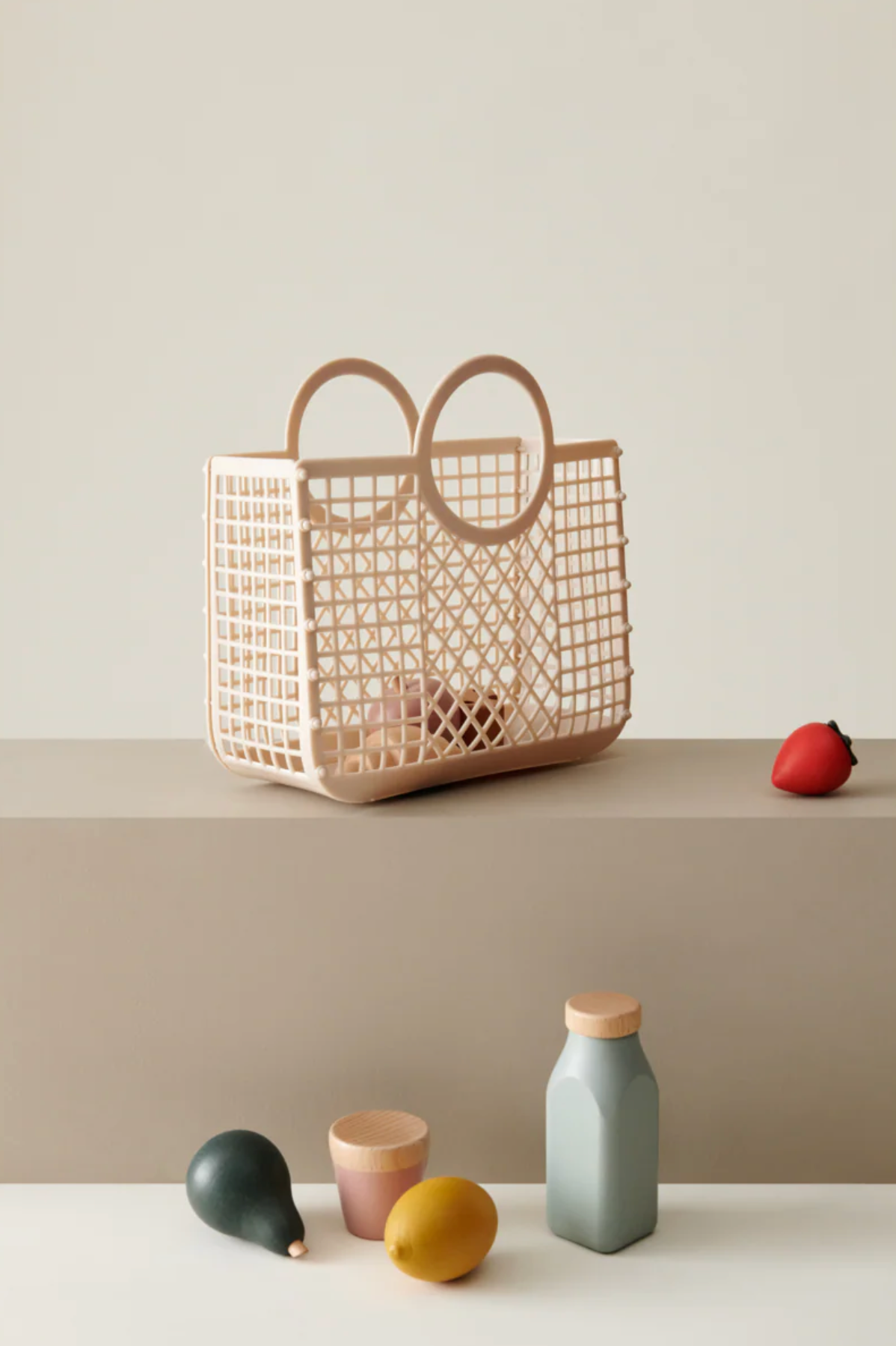 Ensemble de dînette en bois comprenant 8 aliments et fruits, rassemblés dans un adorable panier en silicone. Parfait pour des jeux de rôle imaginatifs à la maison ou pour emporter le panier lors de sorties en famille.