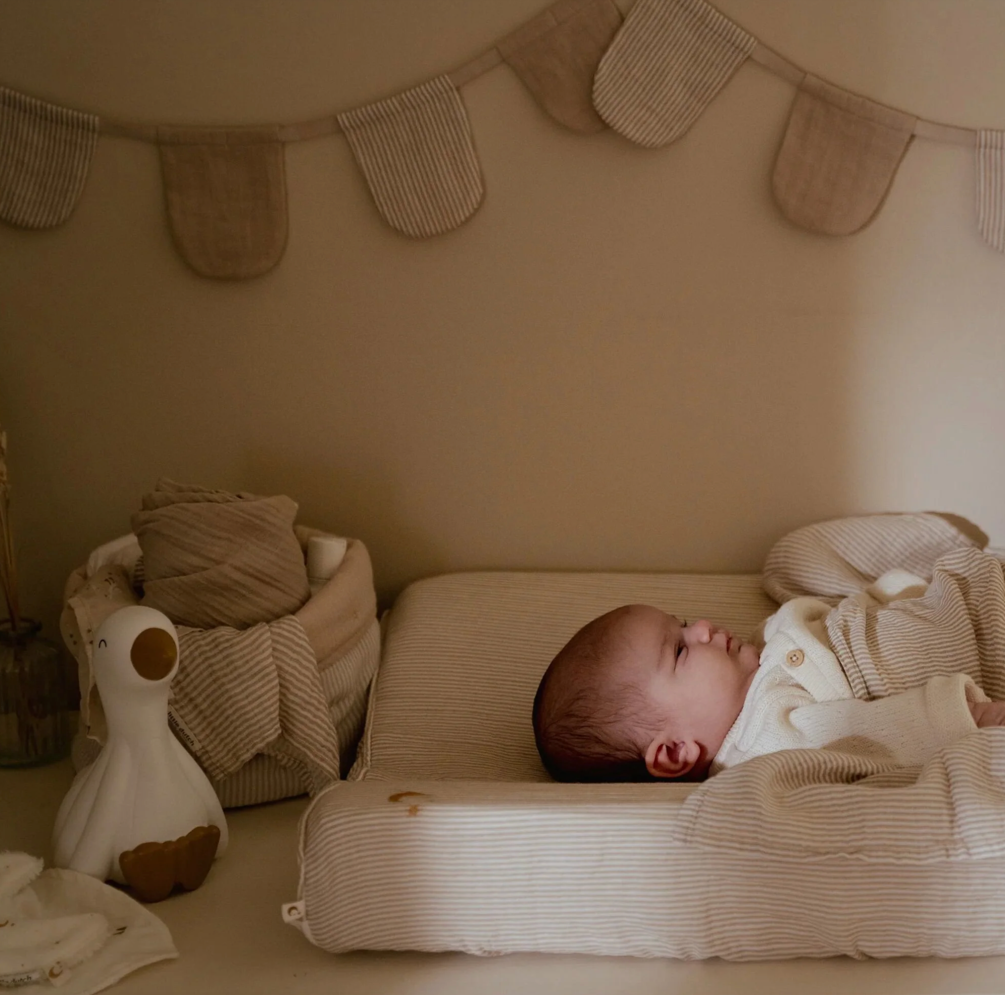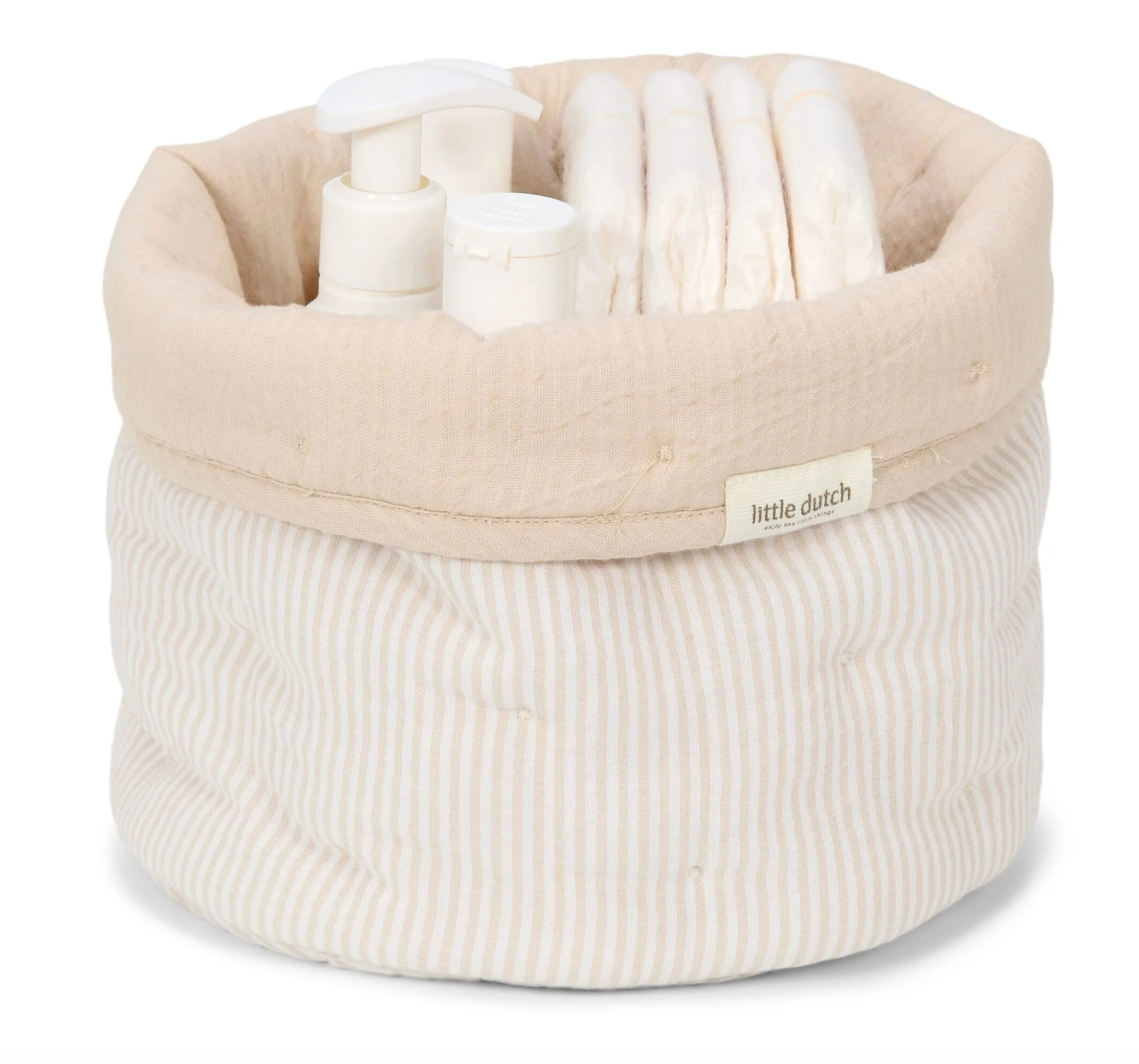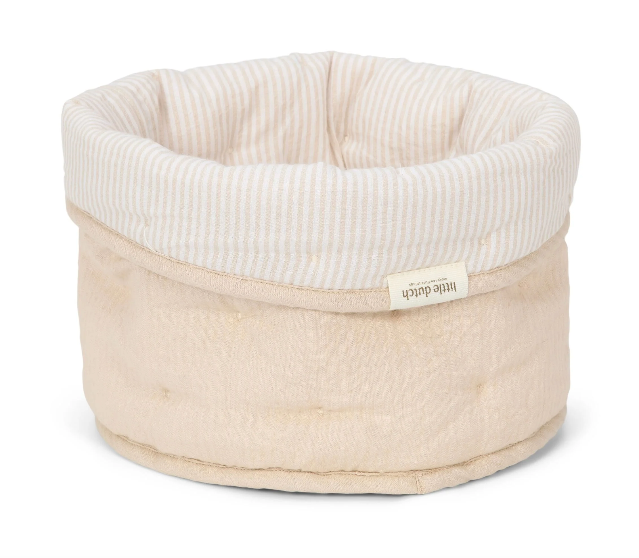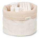 Gardez la chambre d'enfant organisée et bien rangée avec ce panier de rangement matelassé décoratif. Fabriqué en popeline de coton biologique 100% de haute qualité, ce panier rond offre à la fois style et fonctionnalité. Réversible avec un bord replié, parfait pour ranger des couches et d'autres accessoires, afin que la chambre soit ordonnée et offre de l'espace.
