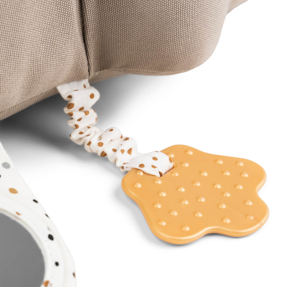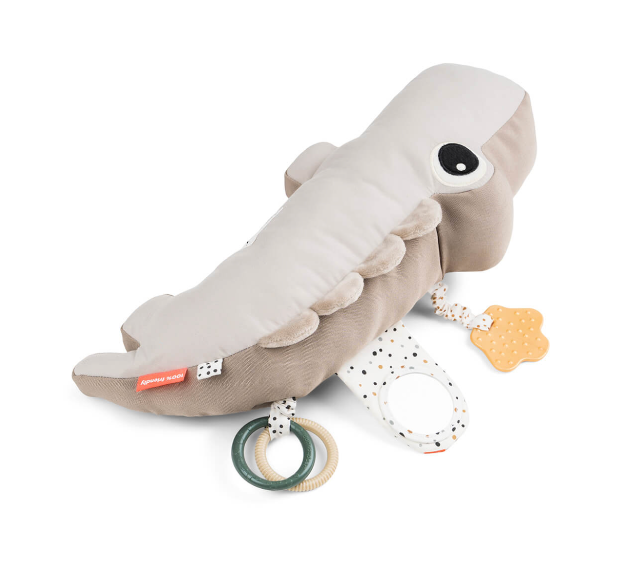 Avec une dentition en moutarde et des anneaux pour apaiser les démangeaisons des gencives, des textures tactiles, un petit miroir, des rubans, des bruits de froissement et un ventre de crocodile qui s'agite, il y a beaucoup d'activités à explorer pour votre bébé.