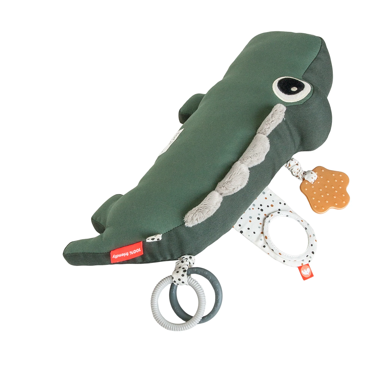 Avec une anneau de dentition et des anneaux pour apaiser les démangeaisons des gencives, des textures tactiles, un petit miroir, des rubans, des bruits de froissement et un ventre de crocodile qui s'agite, il y a beaucoup d'activités à explorer pour votre enfant lorsqu'il s'exerce à l'heure du ventre.